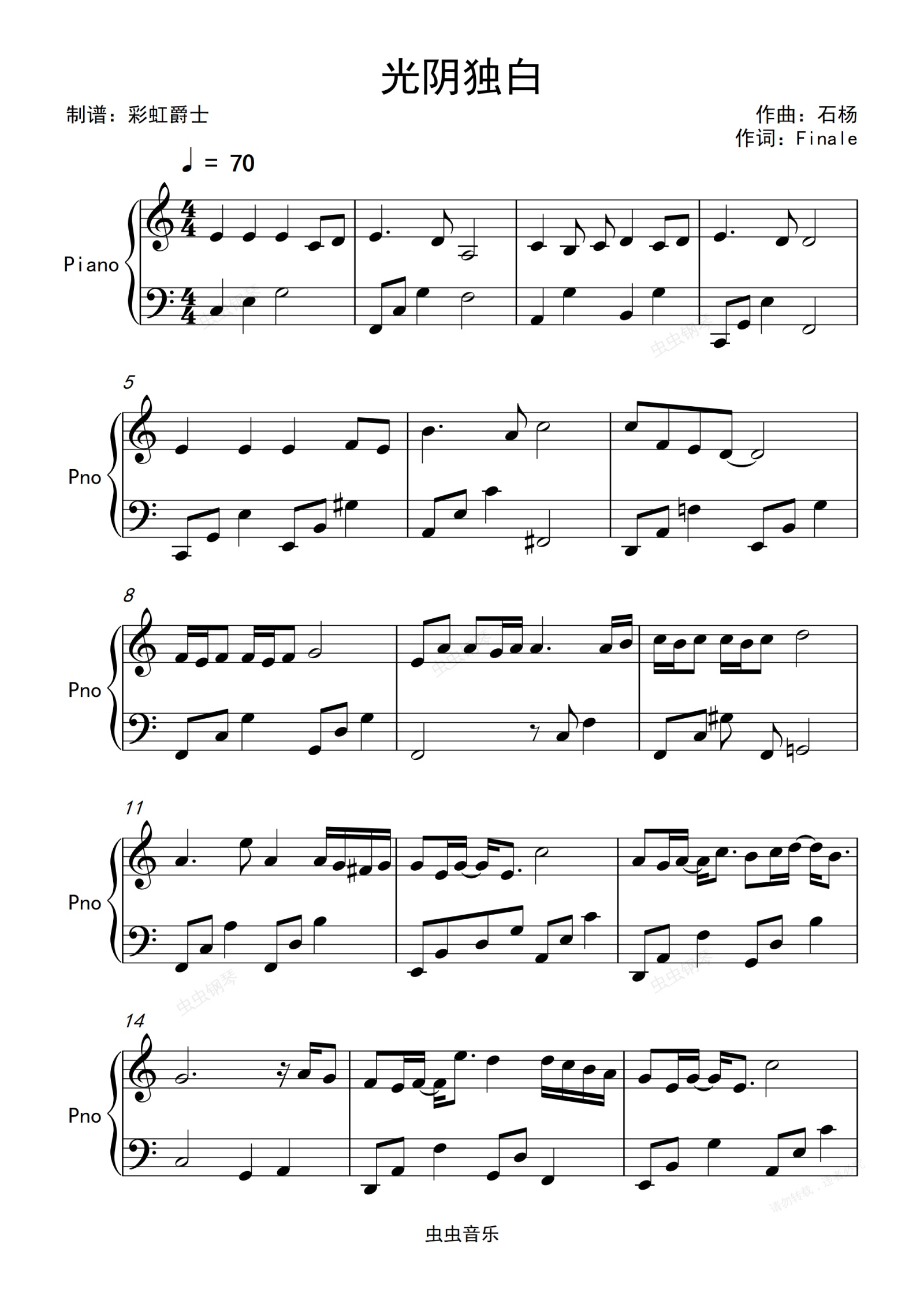 钢琴谱:光阴独白-C调简单版-你是我的荣耀ED 徐佳莹