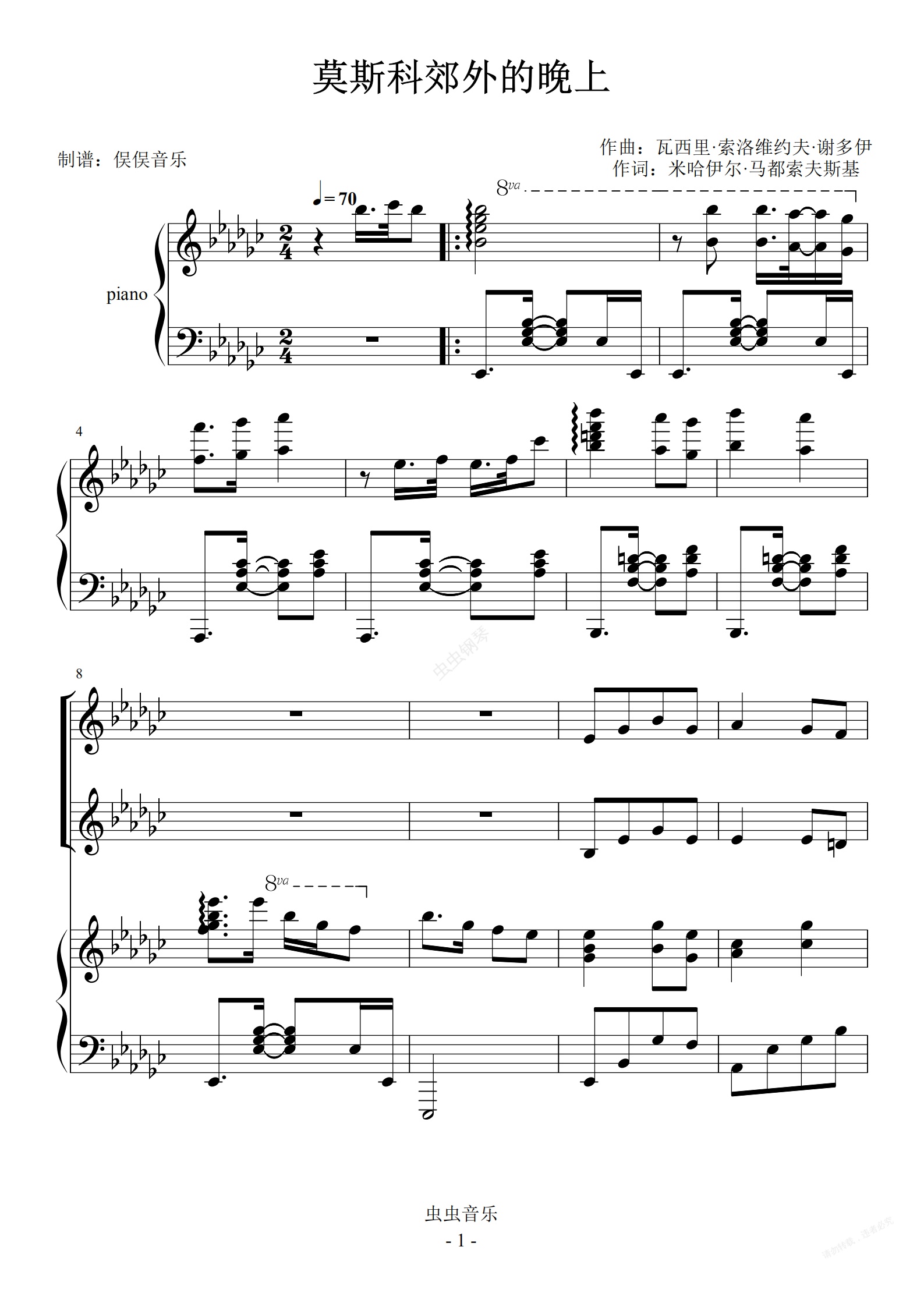 钢琴谱:莫斯科郊外的晚上(弹唱谱)