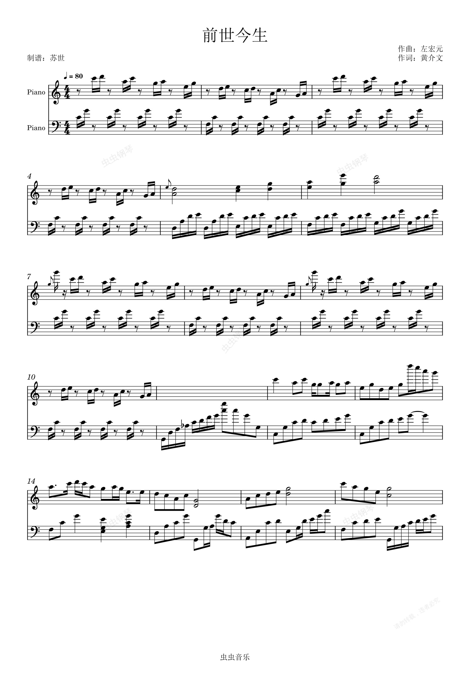 钢琴谱:《新白娘子传奇》前世今生 C调版