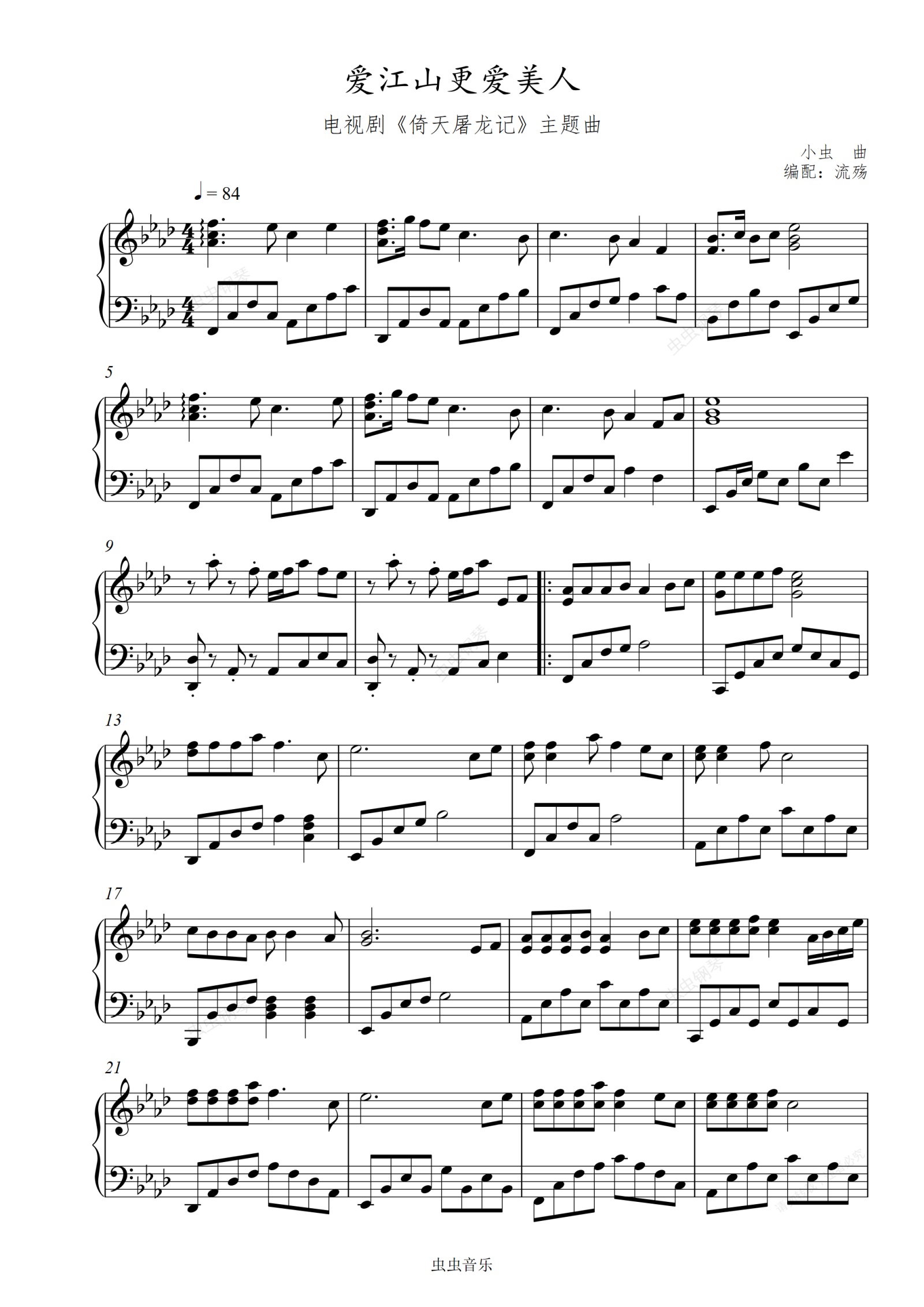 钢琴谱:爱江山更爱美人