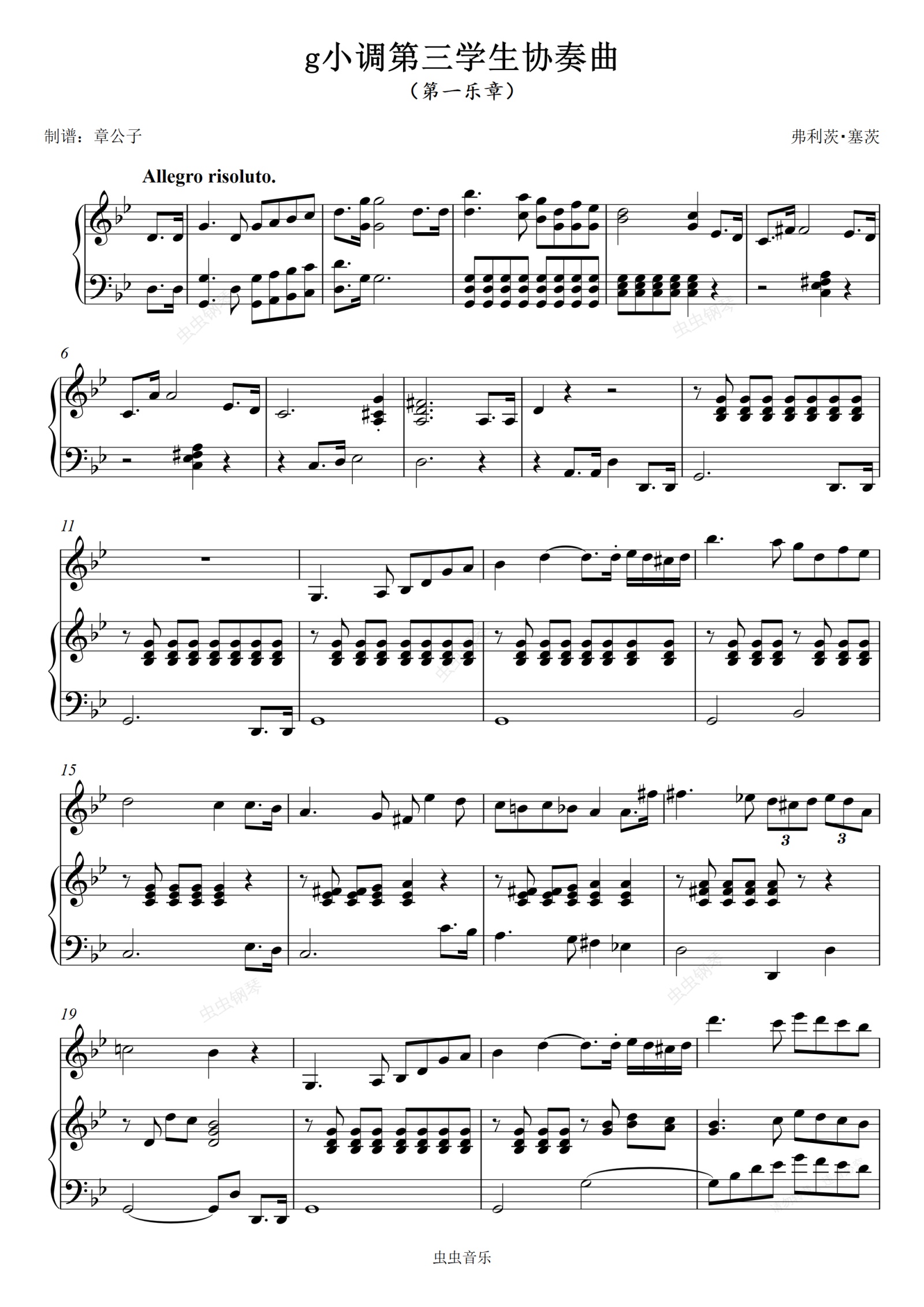 钢琴谱:《g小调第三学生协奏曲第一乐章》(塞茨)钢琴伴奏谱(小提琴主奏)