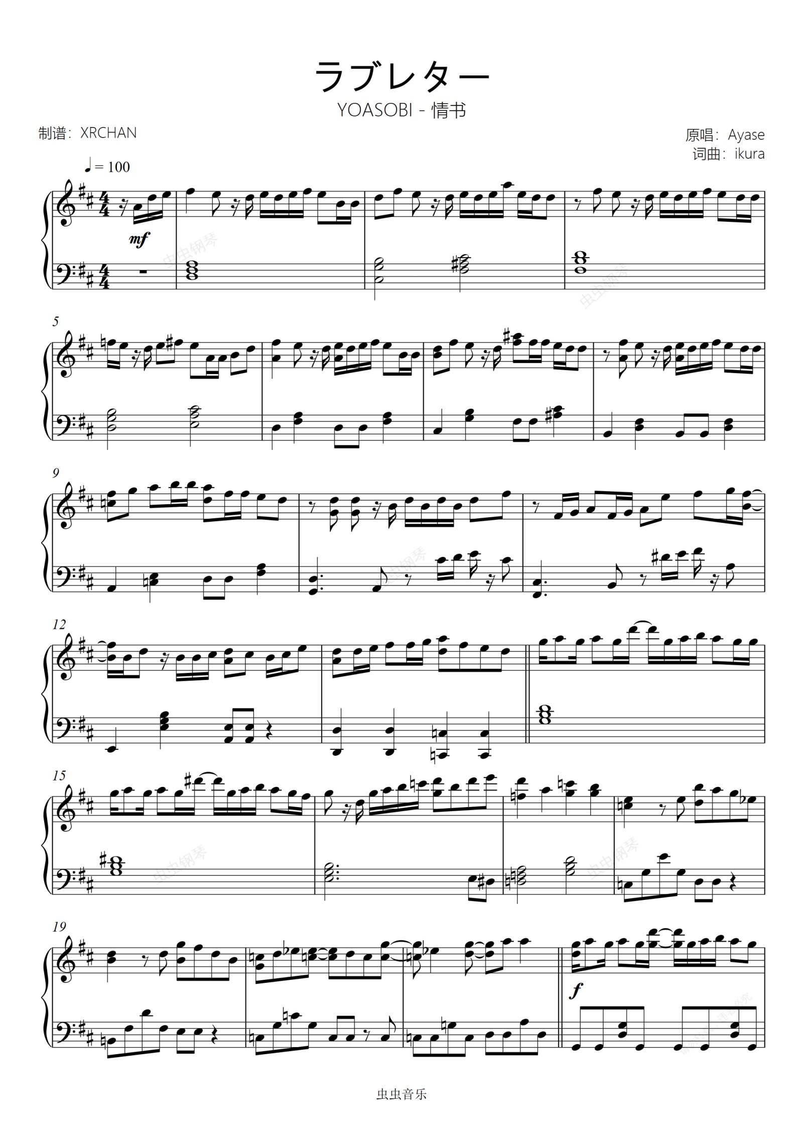 钢琴谱:ラブレター YOASOBI(情书)初级版