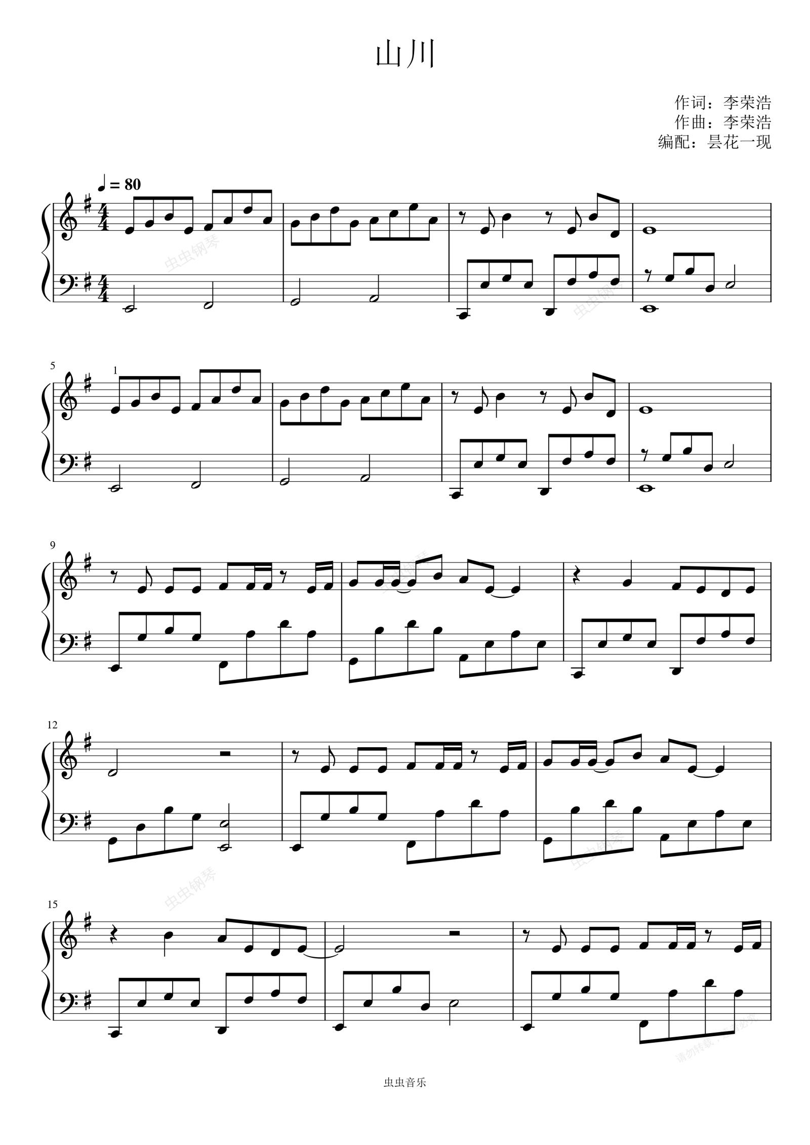 钢琴谱:山川 李荣浩 G大调钢琴独奏谱