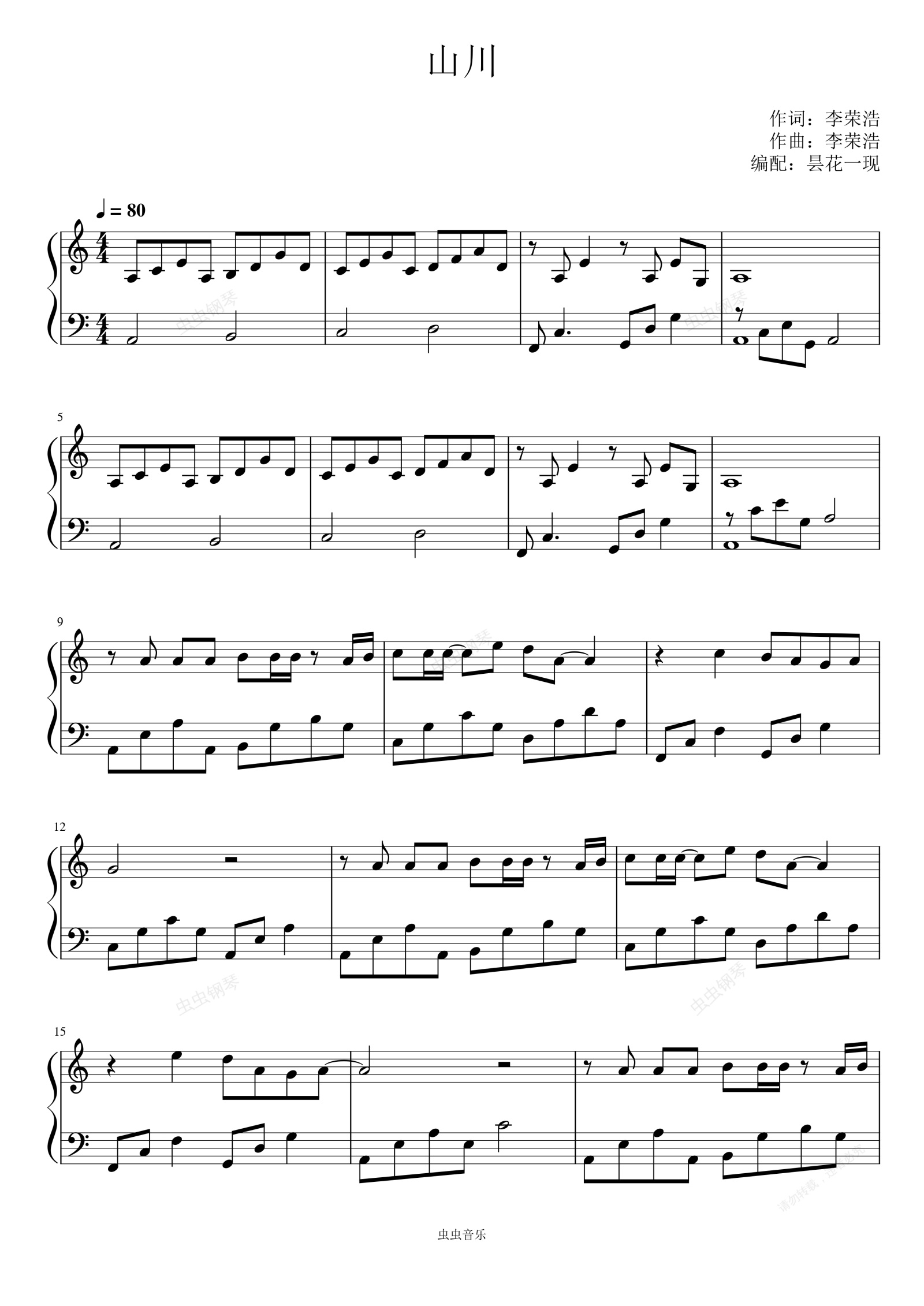 钢琴谱:山川 李荣浩 C大调钢琴独奏版本