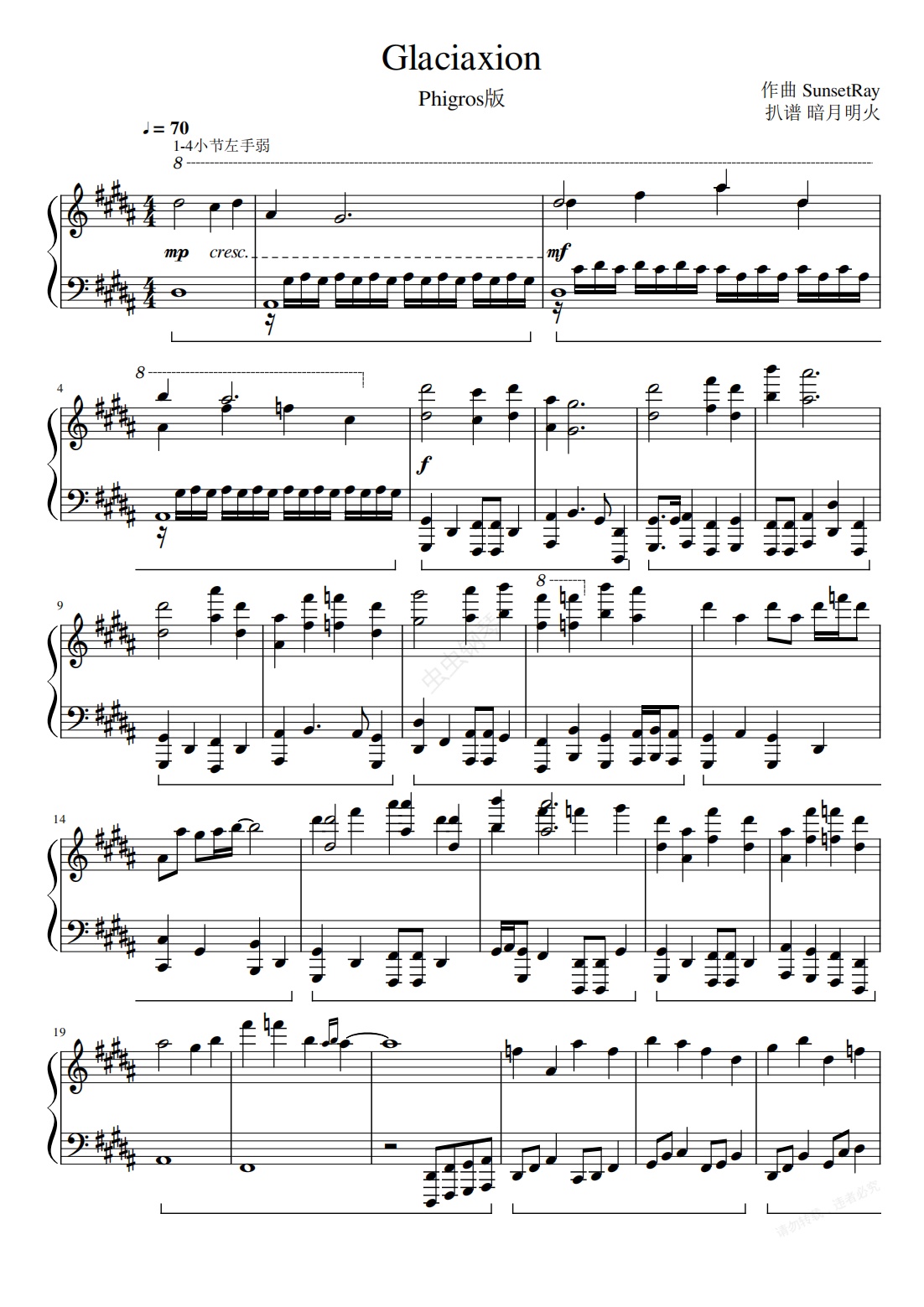 钢琴谱:Glaciaxion Phigros版 SunsetRay