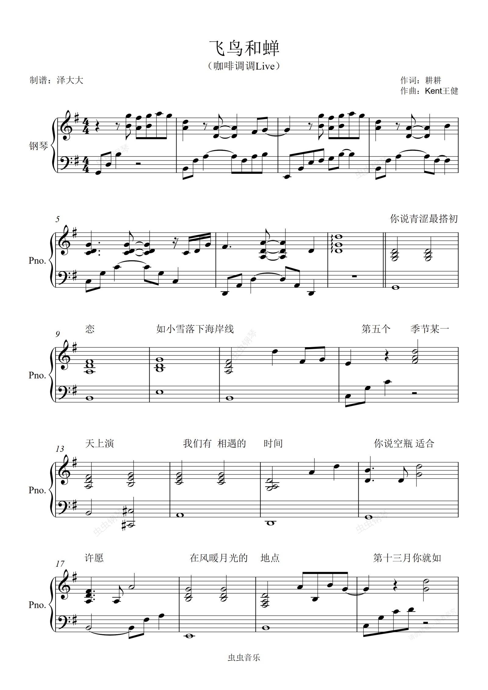 钢琴谱:飞鸟和蝉【咖啡调调Live弹唱附词】泽大大 林俊杰