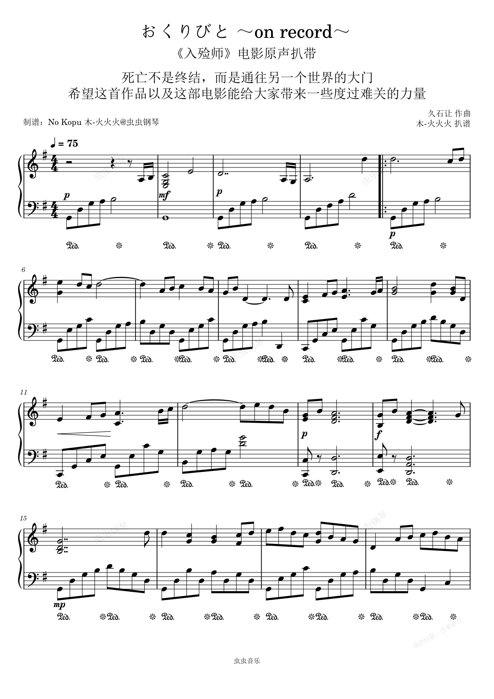 钢琴谱:《入殓师》主题曲原声扒带-G调