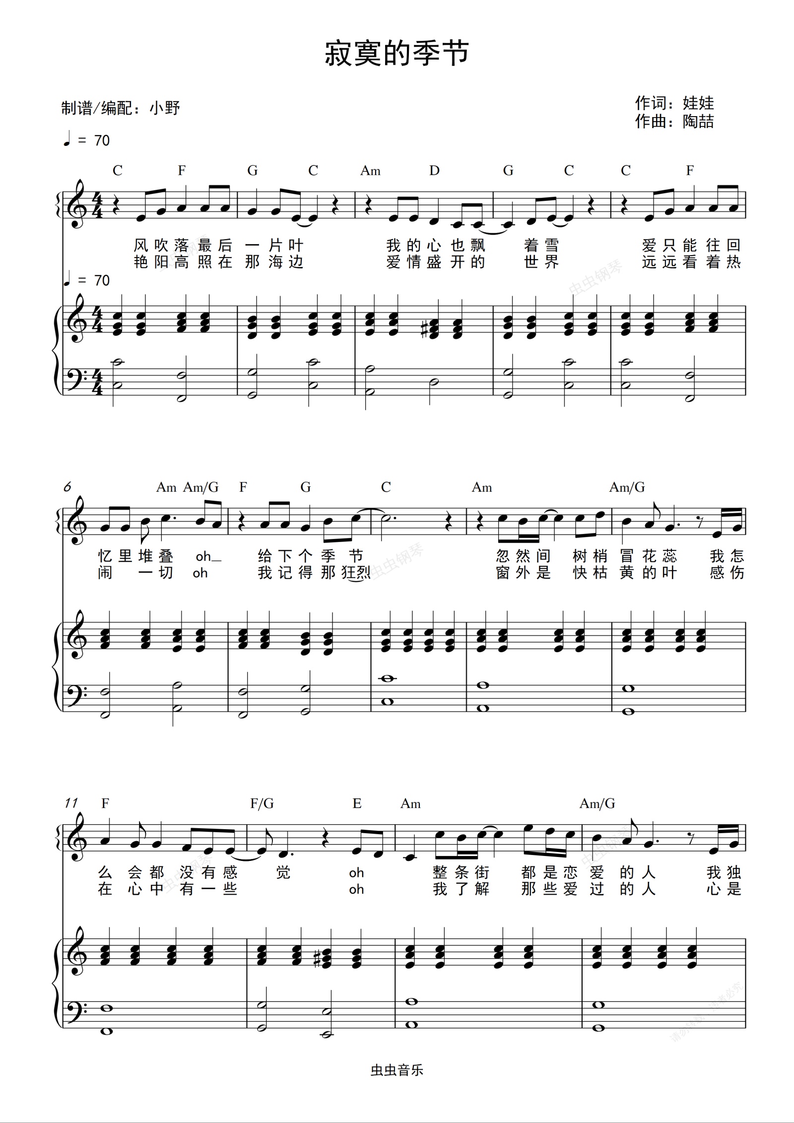 钢琴谱:寂寞的季节(和弦弹唱版)