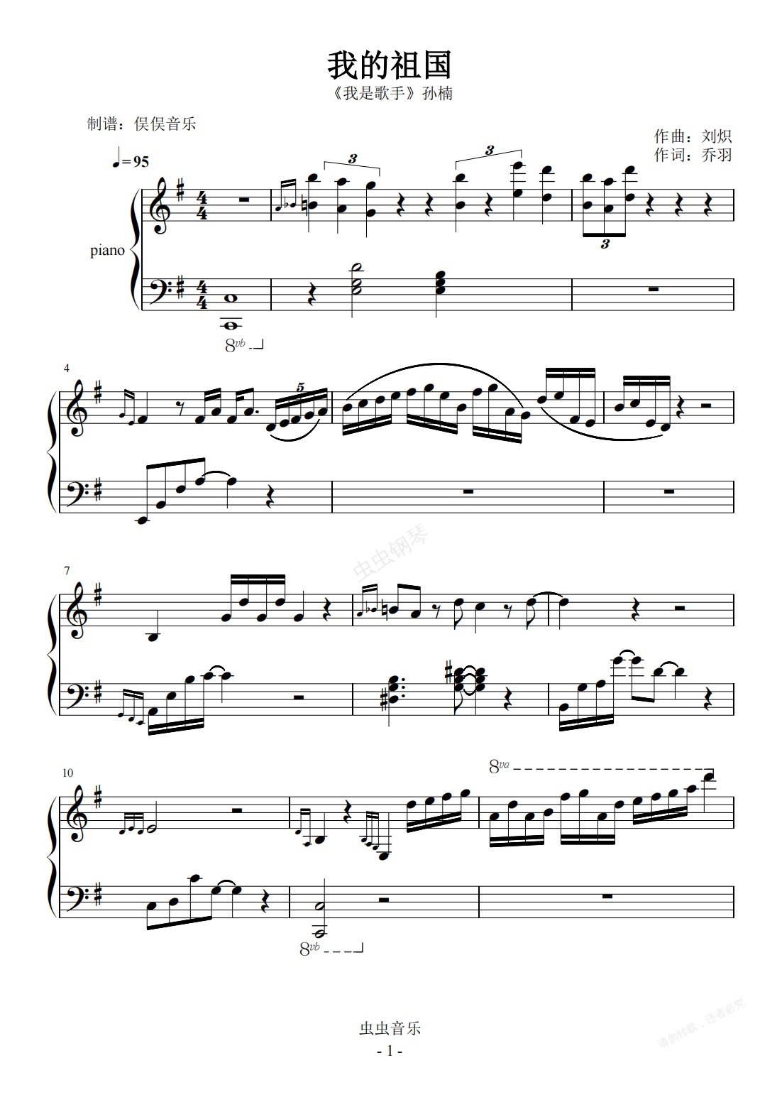 钢琴谱:孙楠 - 我的祖国(弹唱谱)