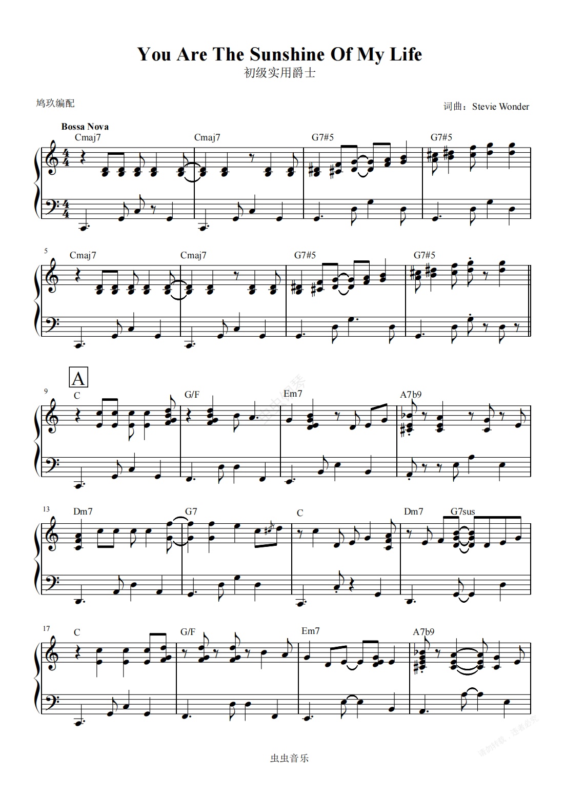 钢琴谱:you are the sunshine of my life(初级实用爵士)