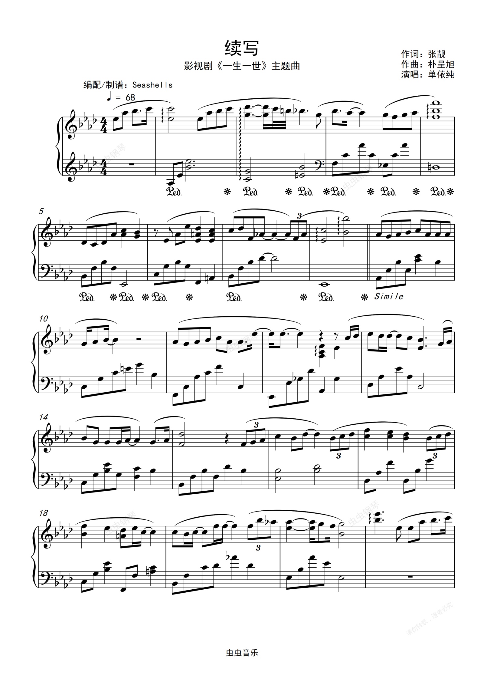 钢琴谱:单依纯-《续写》精编钢琴独奏 影视剧{一生一世}主题曲