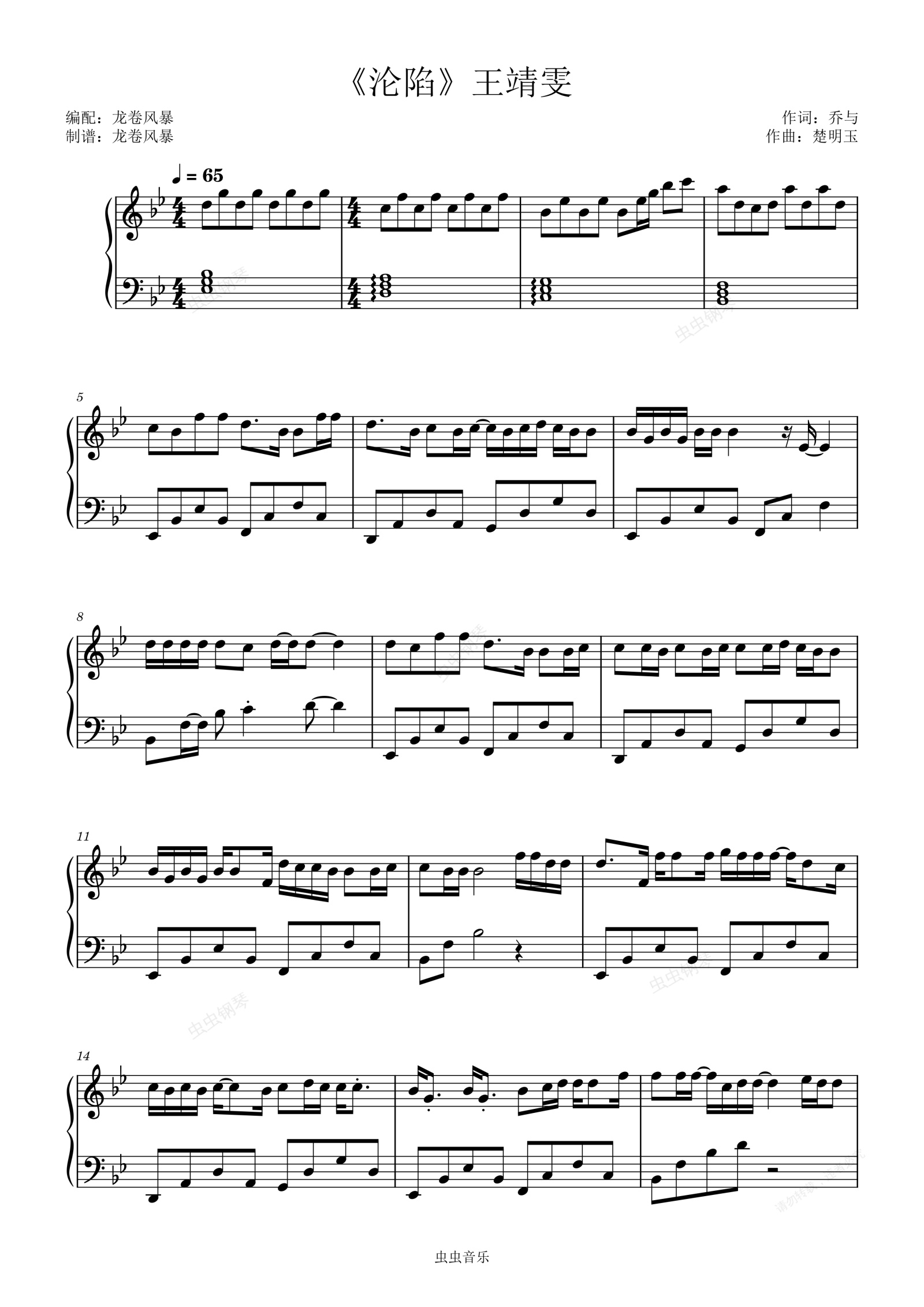 钢琴谱:《沦陷》王靖雯不胖(原调唯美版)