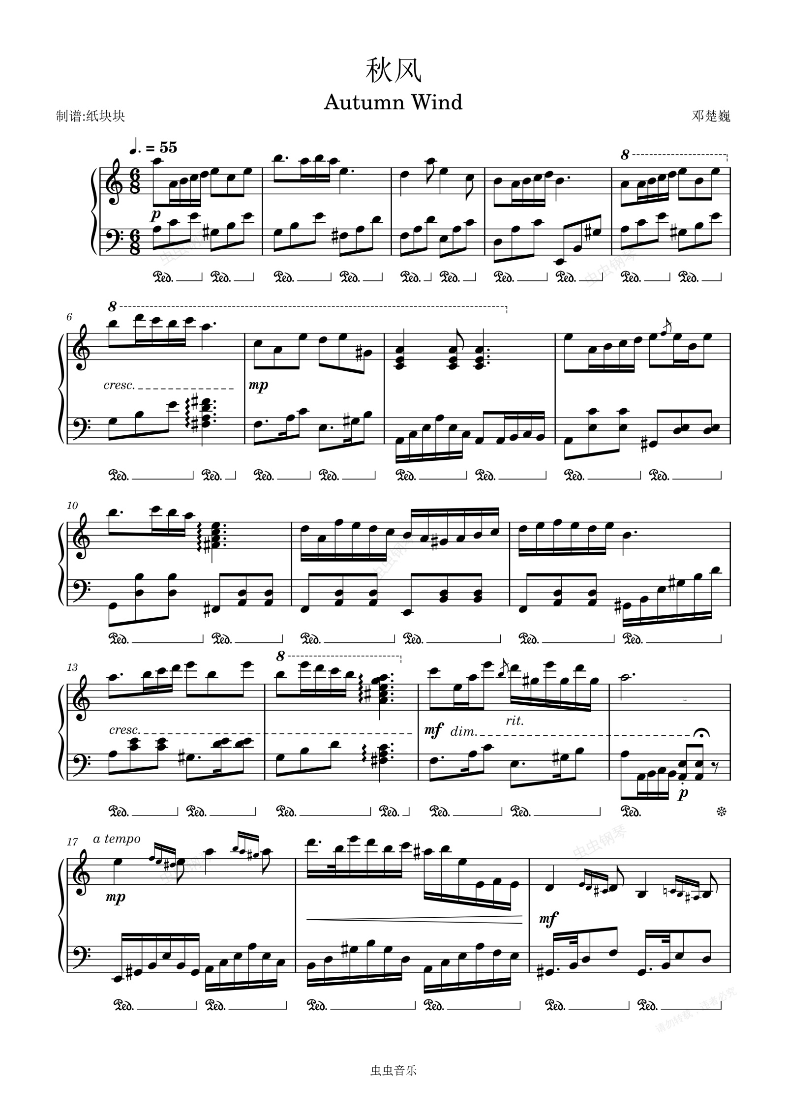 风,有大有小,变化多端。时间过得真快,转眼间秋天已经过了一半。这首曲子旋律、节奏多变,但不长,希望大家喜欢。AI谱模式播放可能会有一定地方抽风,敬请谅解!现在本人正在构思更加抓耳的旋律,不知道能不能成功。。。10月份不见不散!