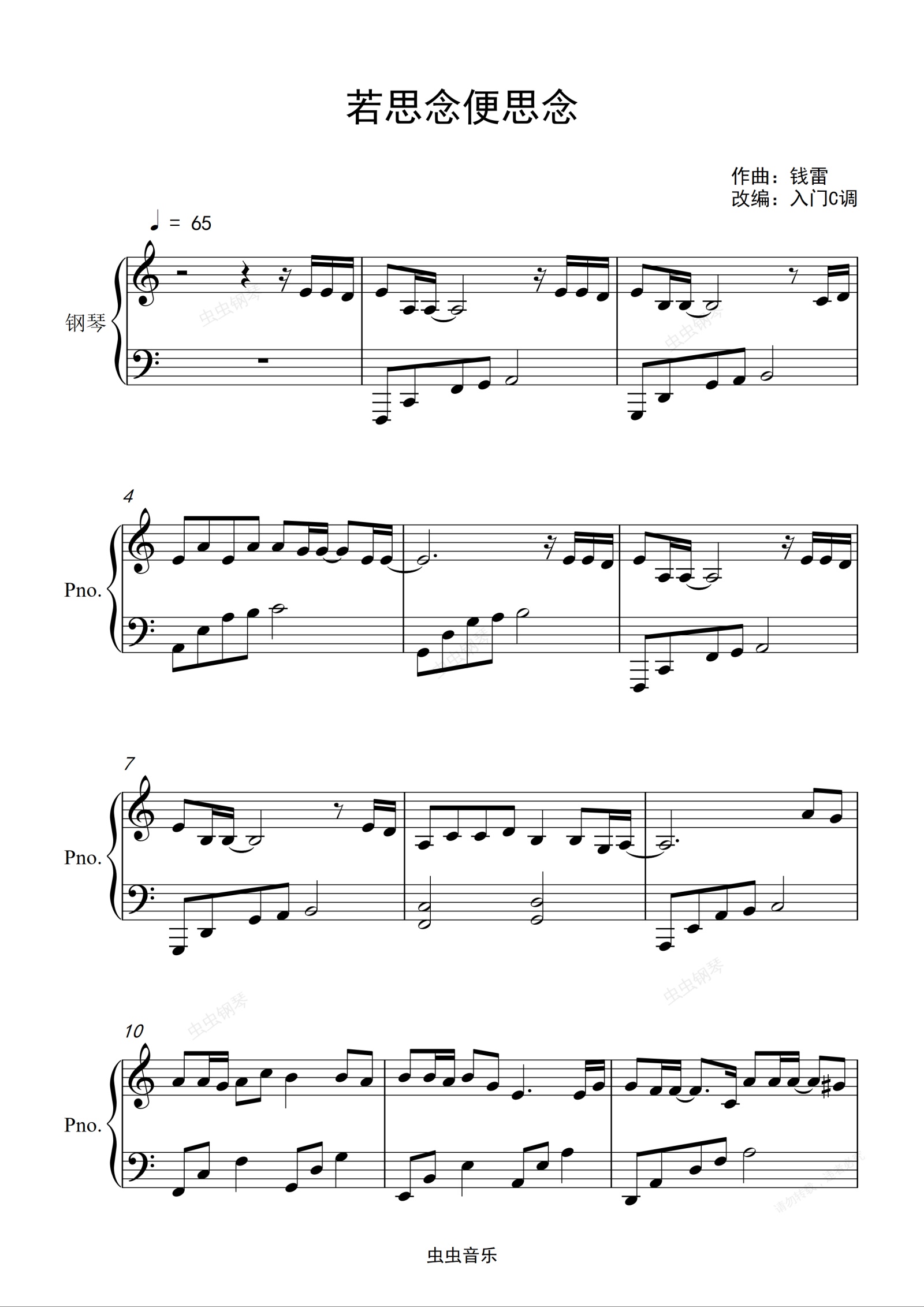钢琴谱:周深《若思念便思念》入门C调简单版
