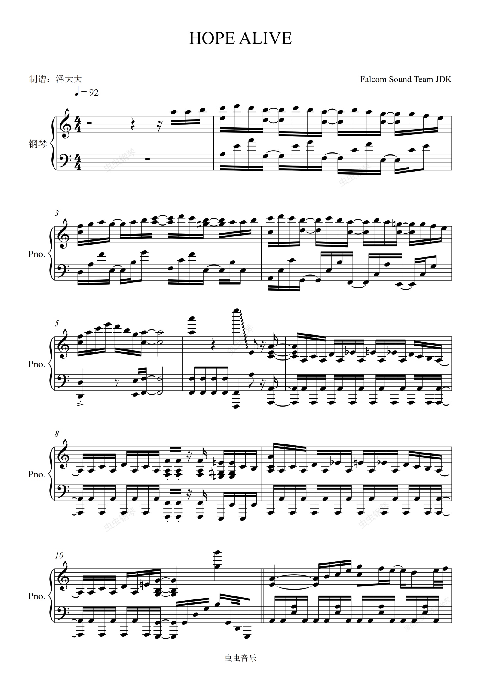 钢琴谱:HOPE ALIVE【钢琴独奏版】泽大大