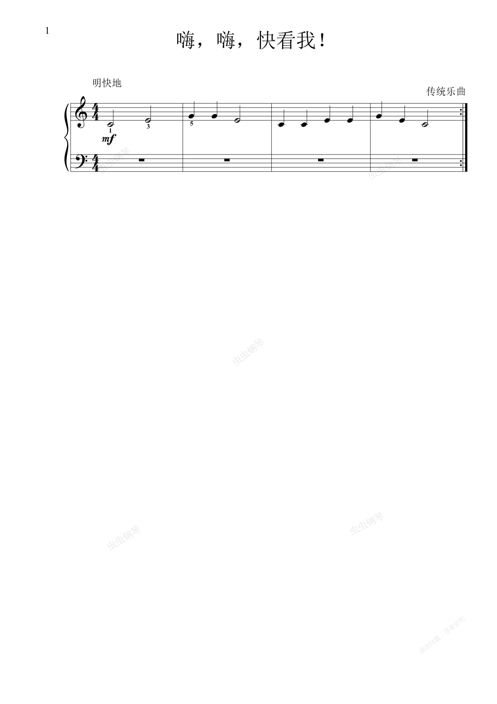 钢琴谱:7-1. 嗨,嗨,快看我!
