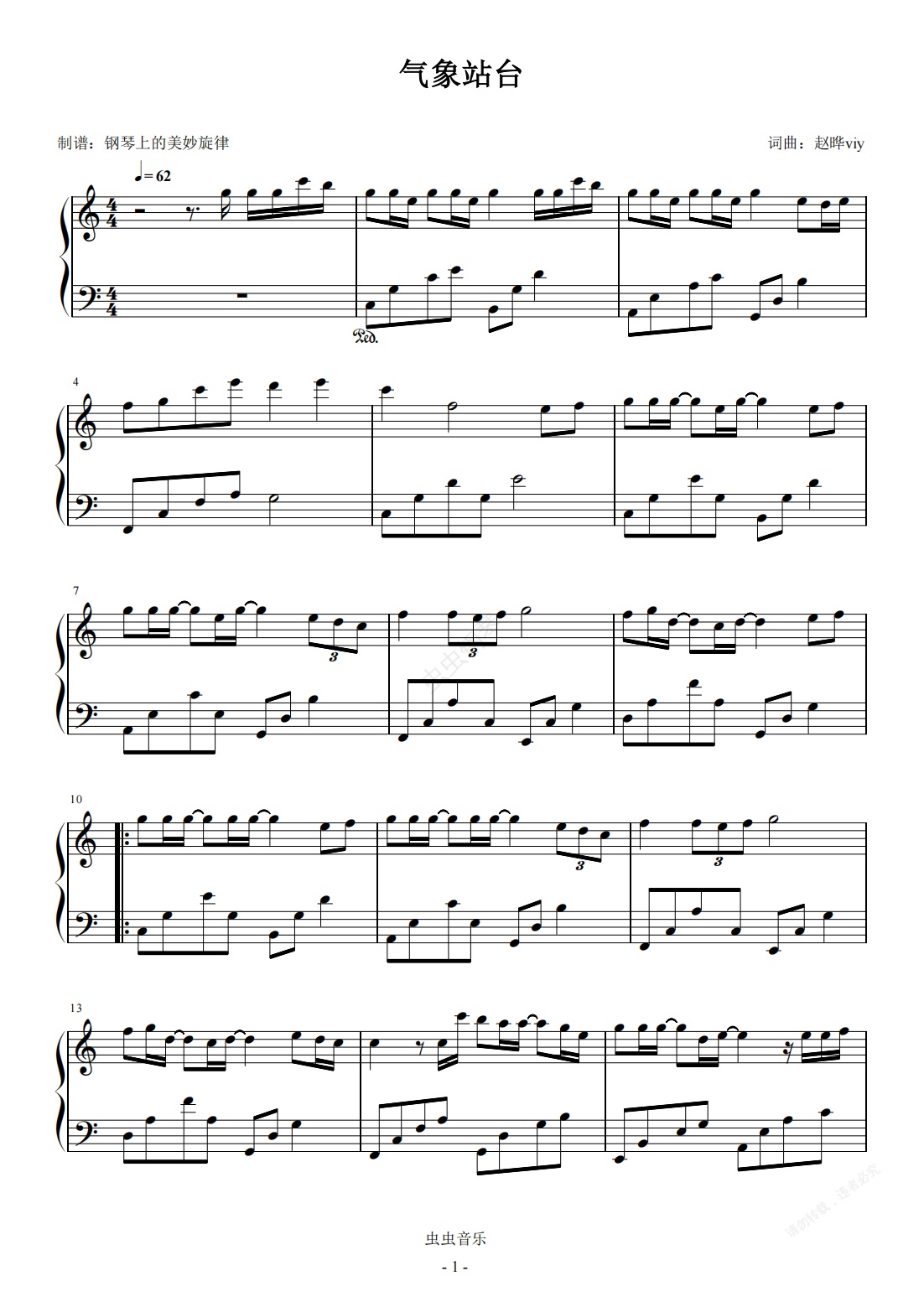 钢琴谱:气象站台 C调简易版 Uu