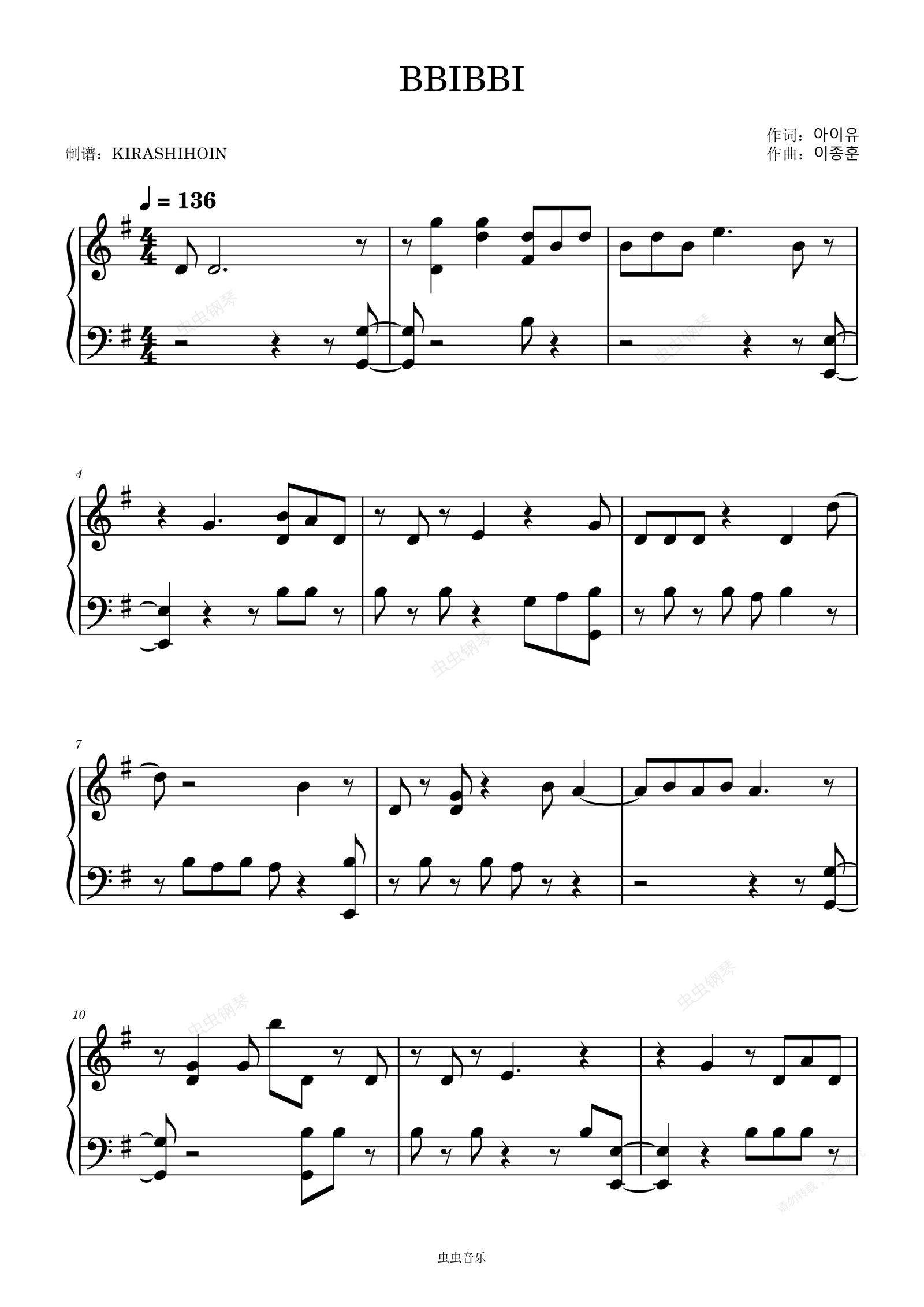 钢琴谱:BBIBBI - IU