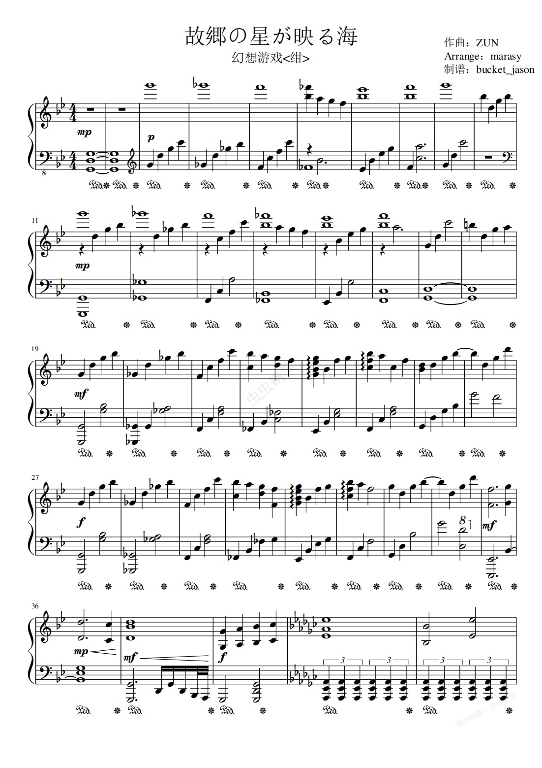 因为偷懒,故给每个小节都加了踏板,大家自己演奏的时候可以自行决定踏板的使用