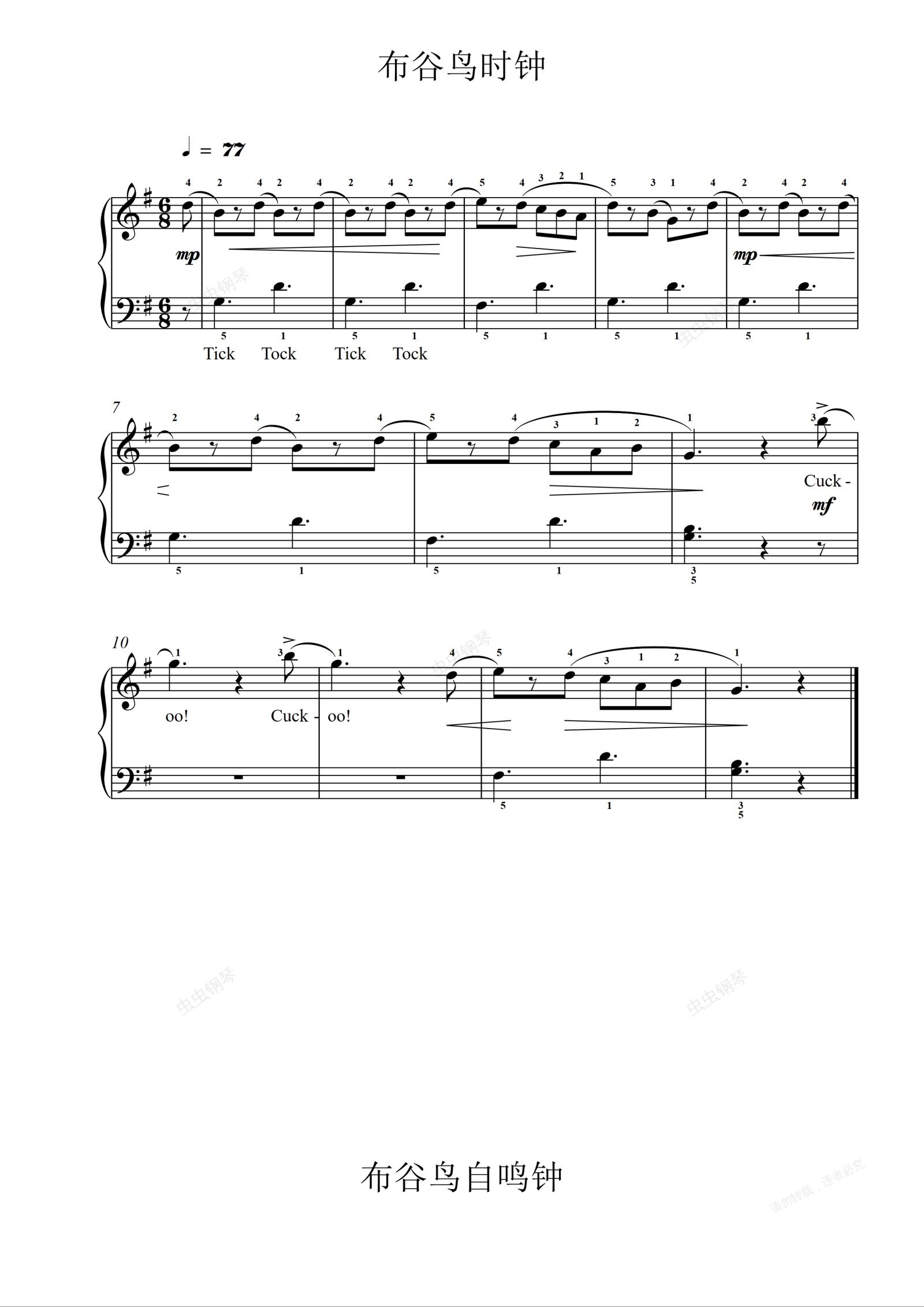 钢琴谱:11.布谷鸟自鸣钟