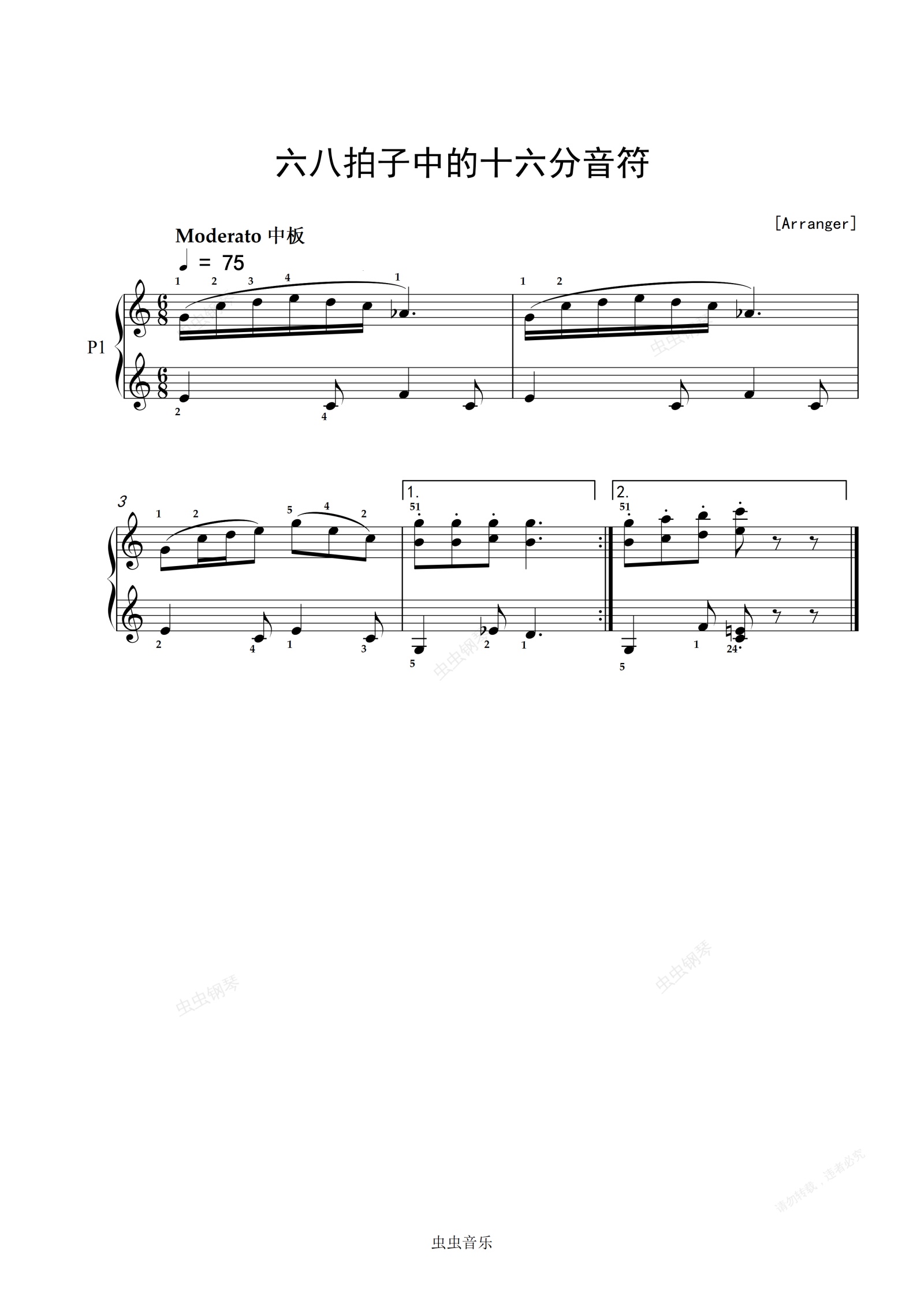 钢琴谱:14.六八拍子中的十六分音符