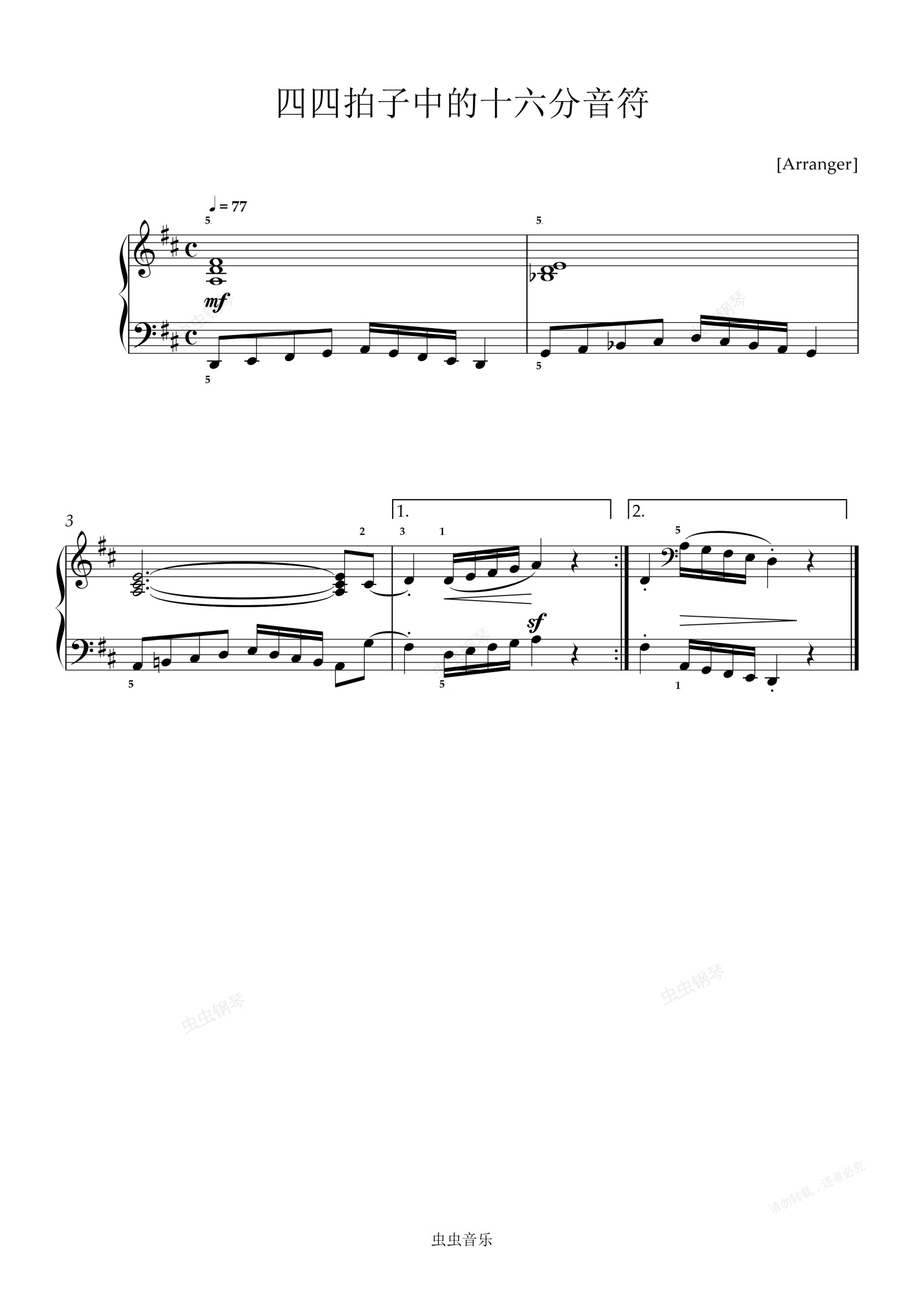 钢琴谱:12.四四拍子中的十六分音符