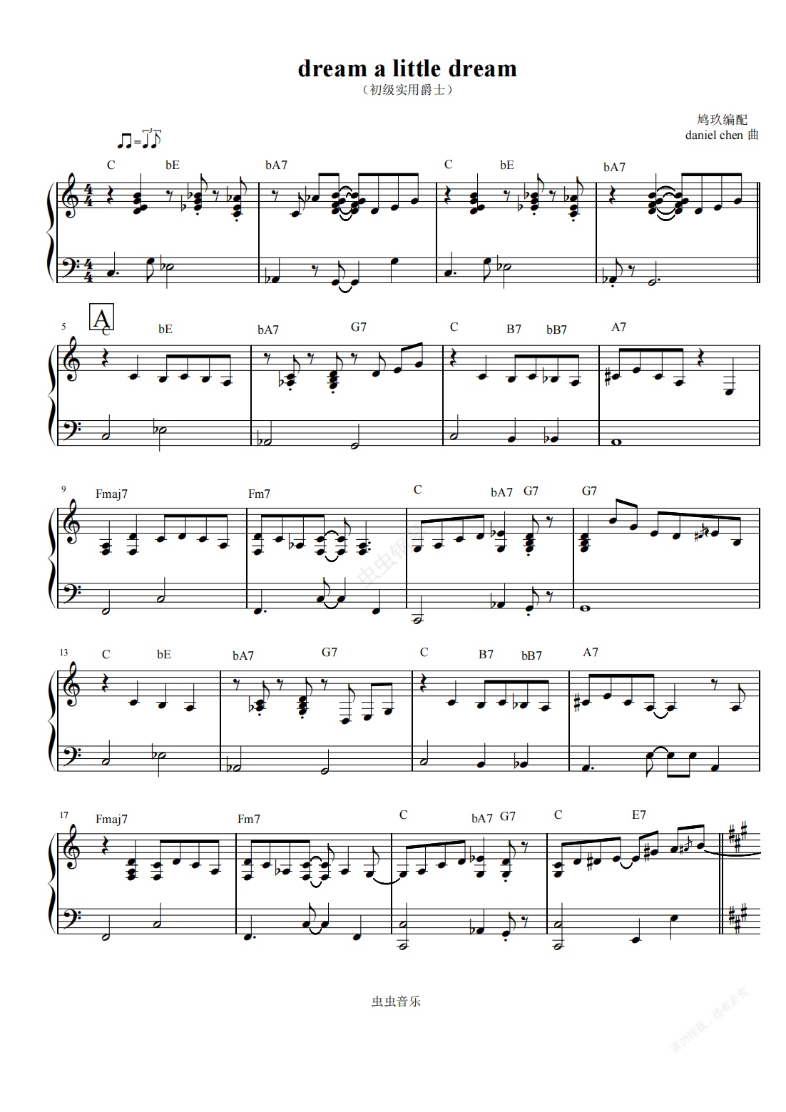 钢琴谱:dream a little dream(初级实用爵士)