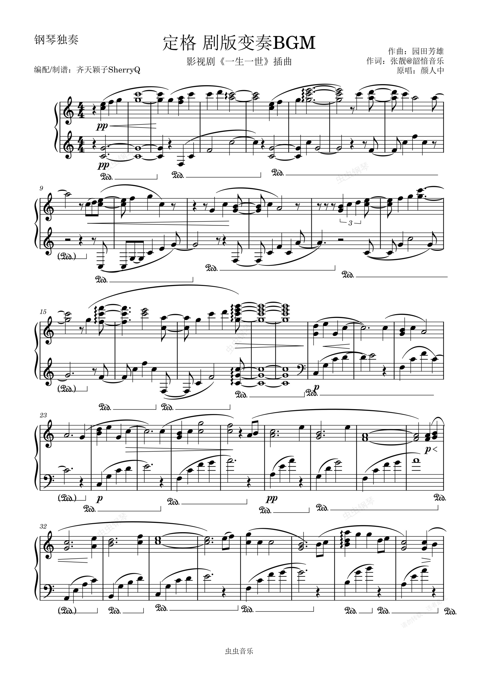 钢琴谱:定格-剧版变奏BGM 《一生一世》电视剧插曲 原调C调