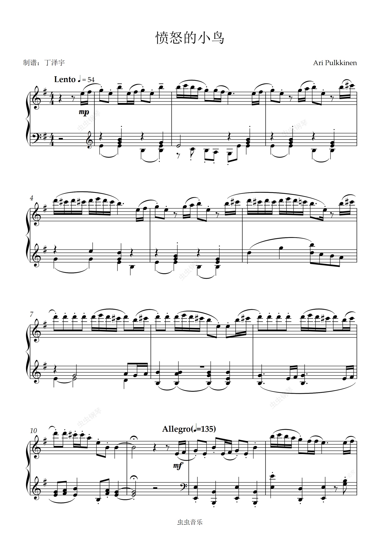 钢琴谱:愤怒的小鸟钢琴独奏谱