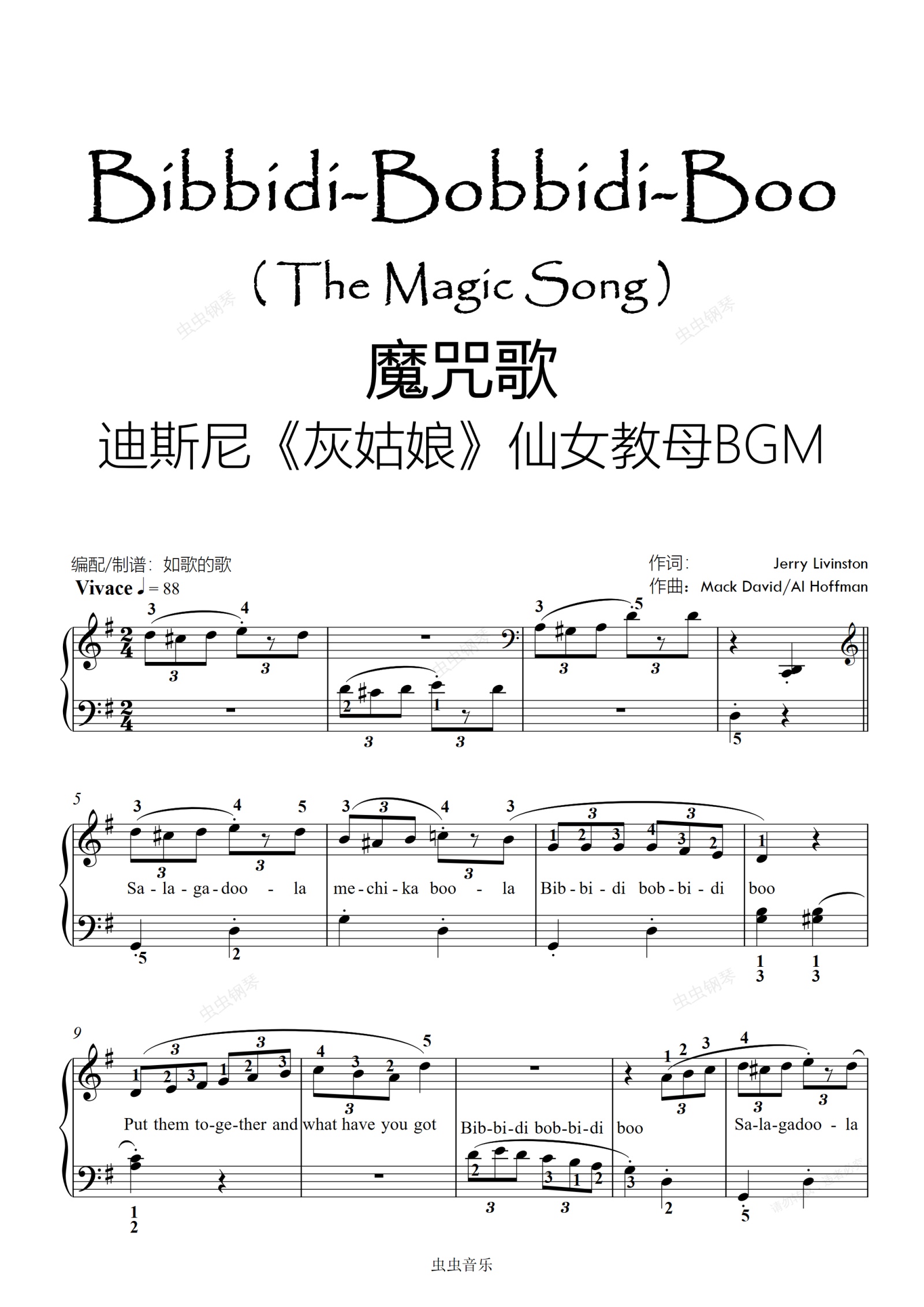 钢琴谱:BIBBIDI-BOBBIDI-BOO姑娘魔咒歌-迪士尼乐园仙女教母bgm