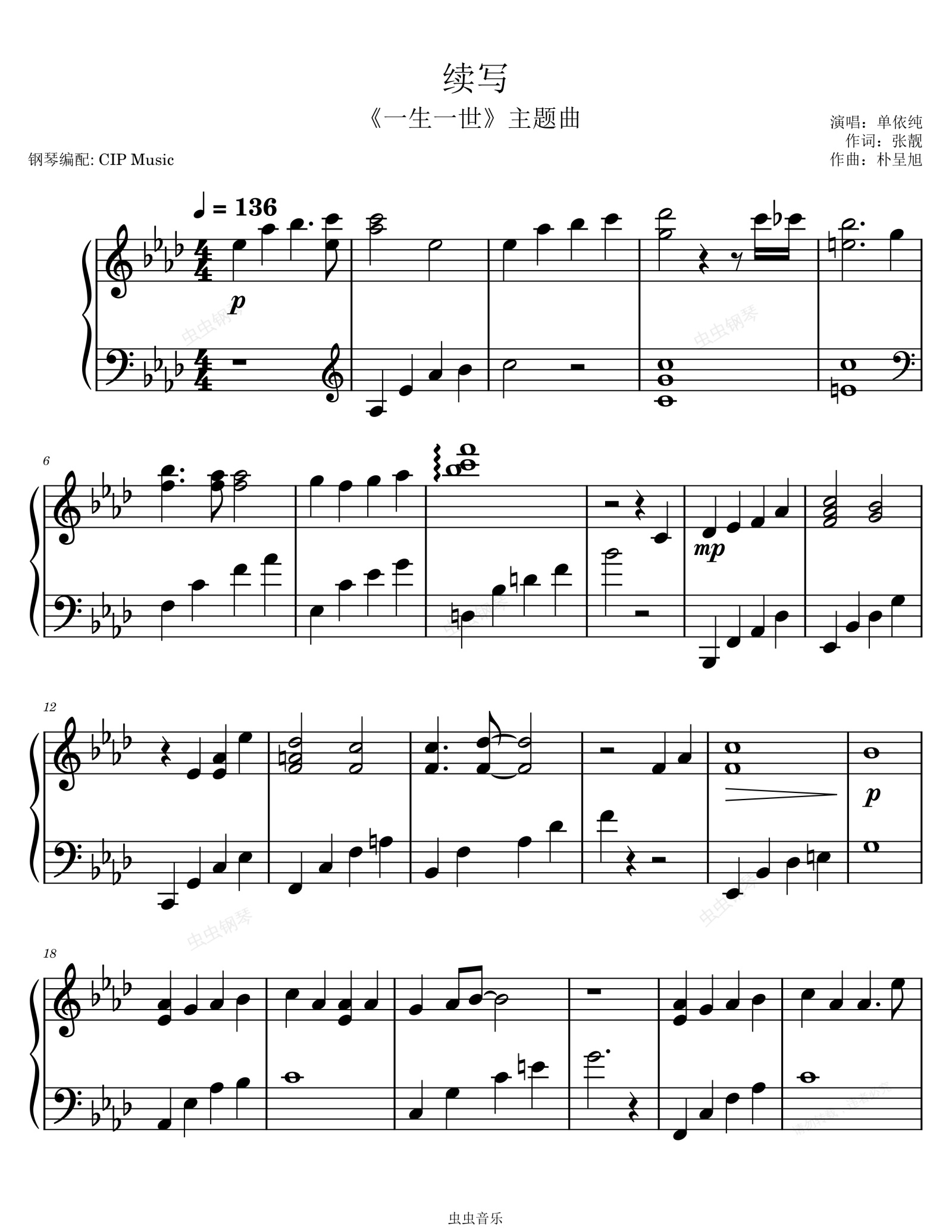钢琴谱:《续写》原调版 - 《一生一世》主题曲