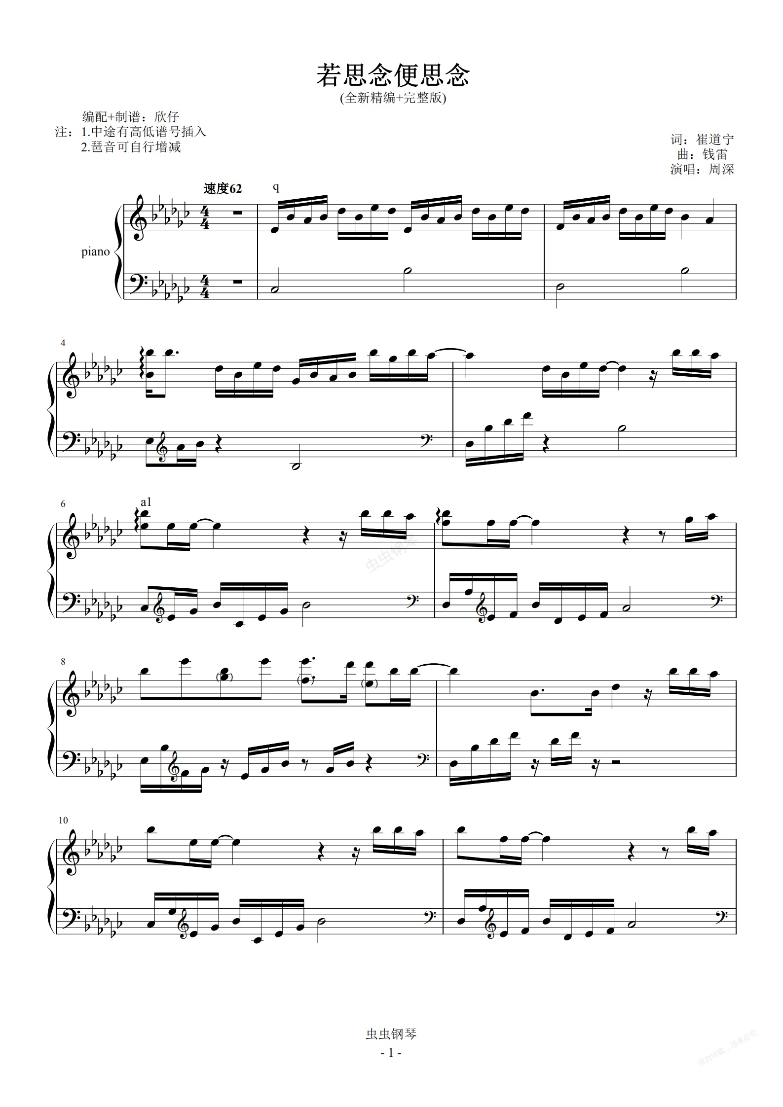 钢琴谱:周深-降G《若思念便思念》(全新精编+完整版)