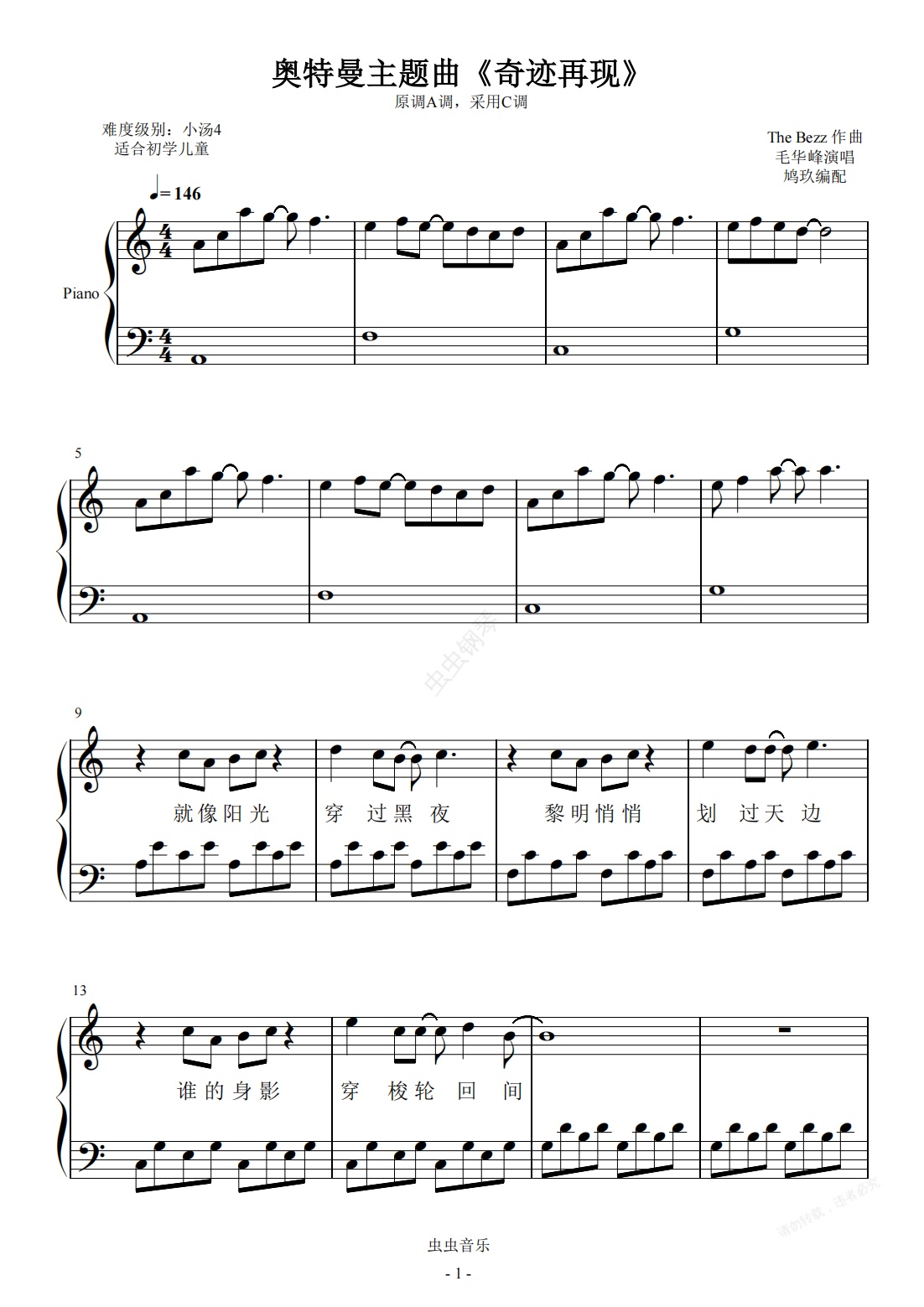 钢琴谱:(小汤4版)迪迦奥特曼主题曲《奇迹再现》