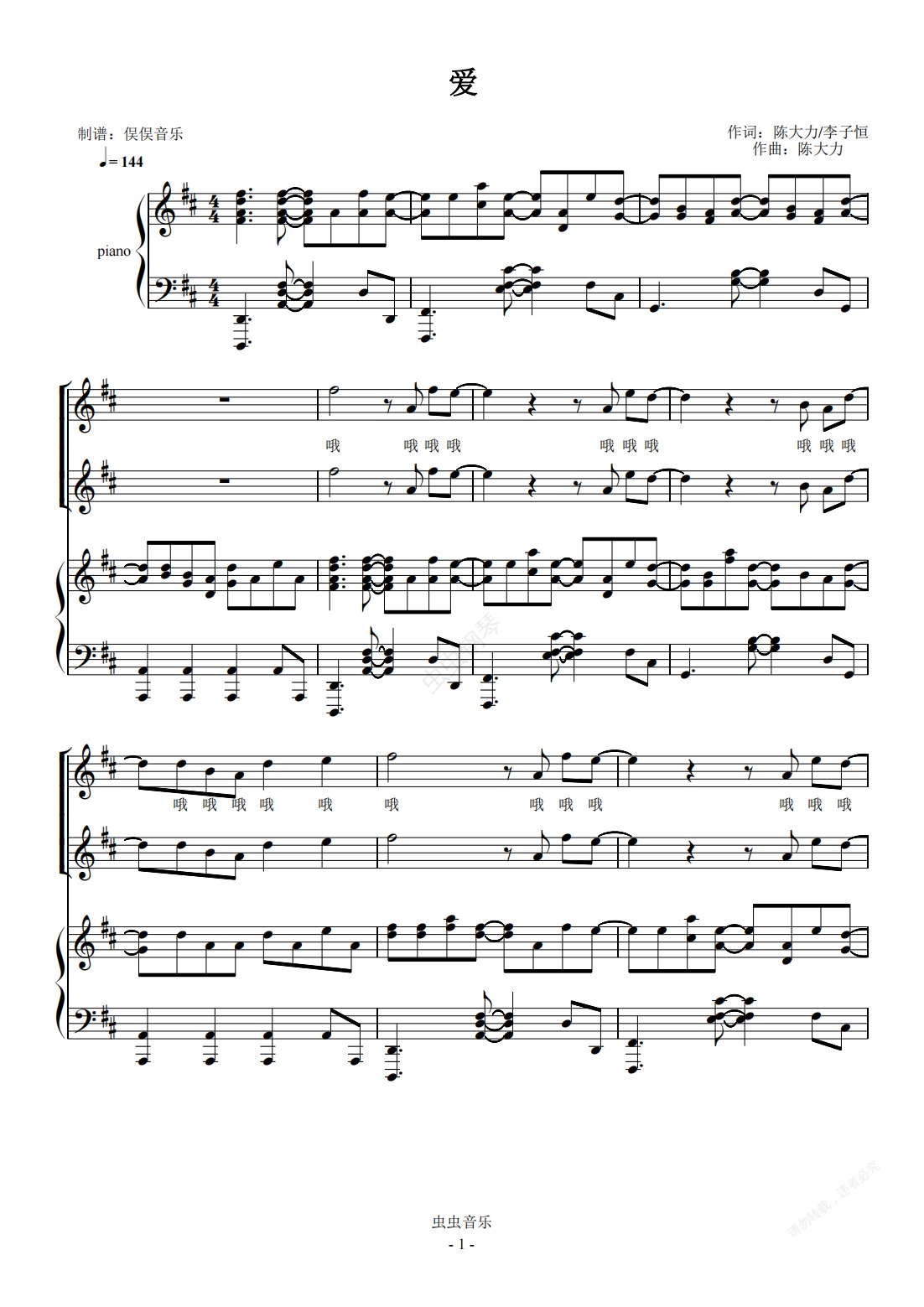 钢琴谱:小虎队 - 爱(合唱伴奏谱)