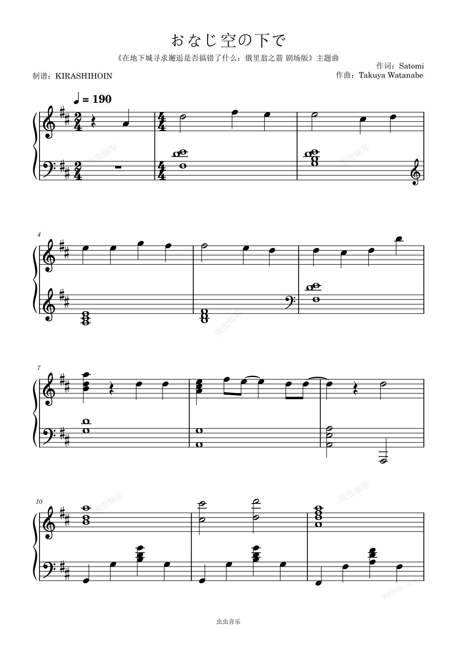 钢琴谱:おなじ空の下で(《在地下城寻求邂逅是否搞错了什么:俄里翁之箭 剧场版》主题曲)- 井口裕香
