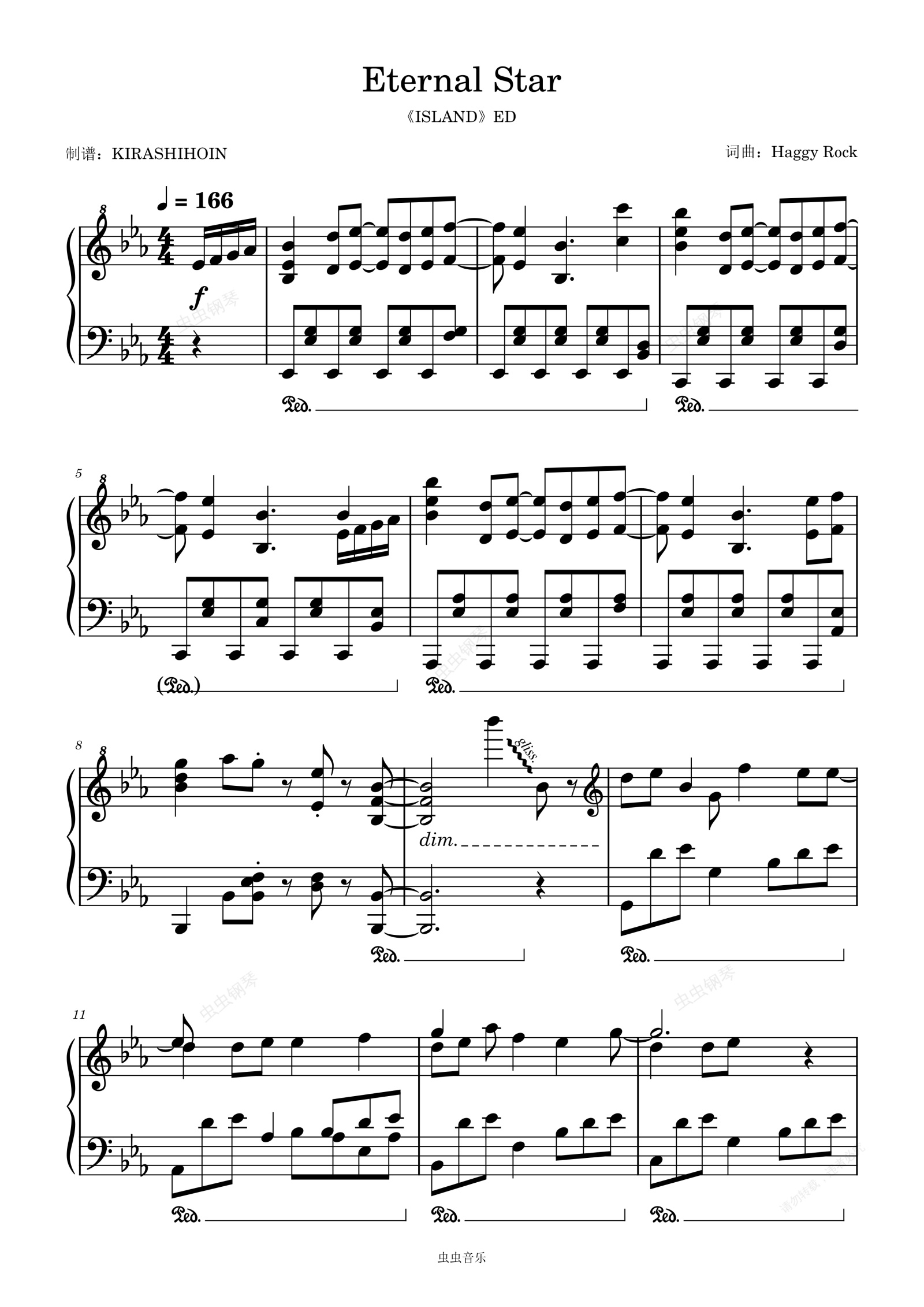 钢琴谱:Eternal Star(《夏岛悬疑/ISLAND》ED/片尾曲)- 亚咲花