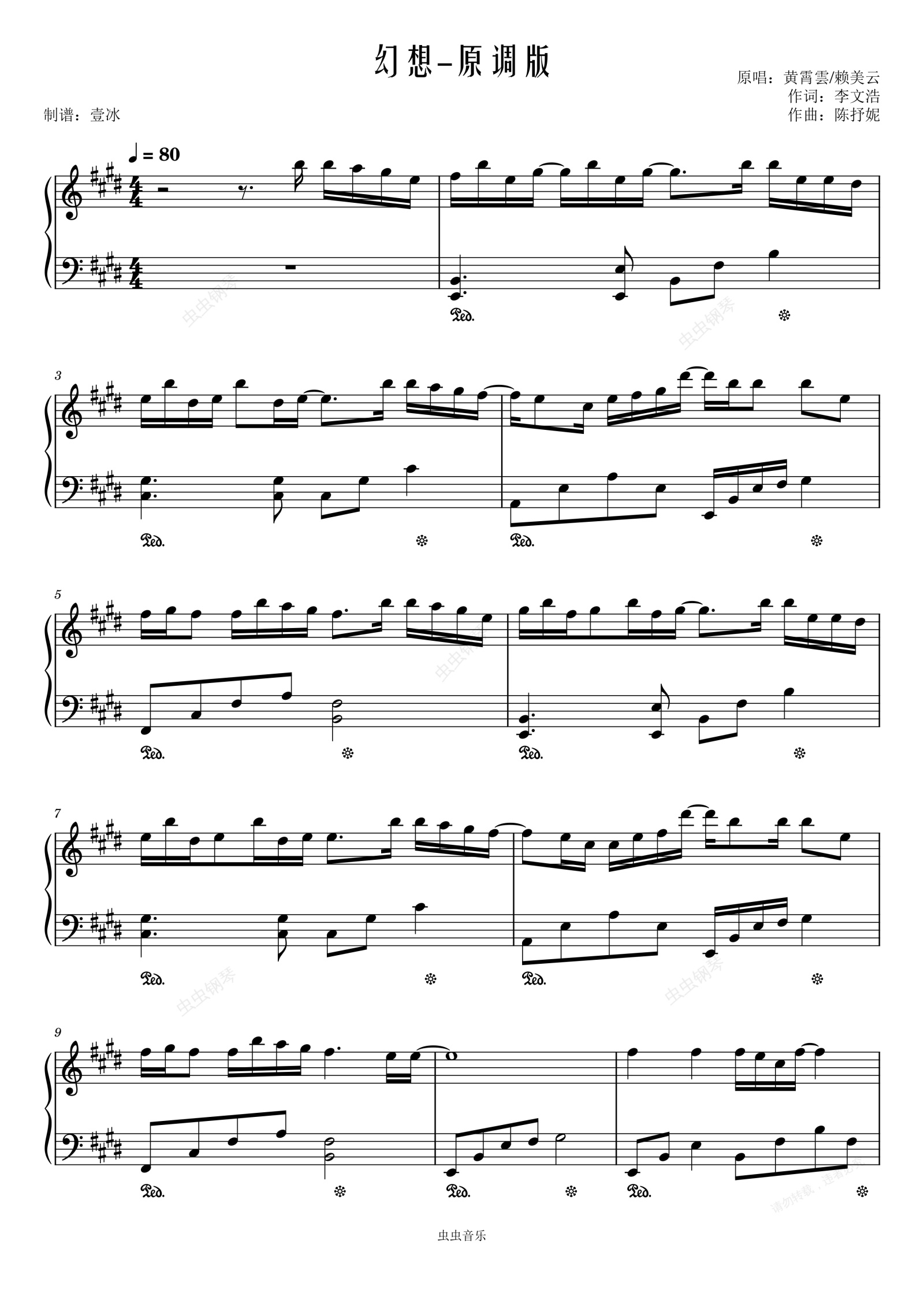 钢琴谱:幻想//黄霄雲/赖美云-原调版