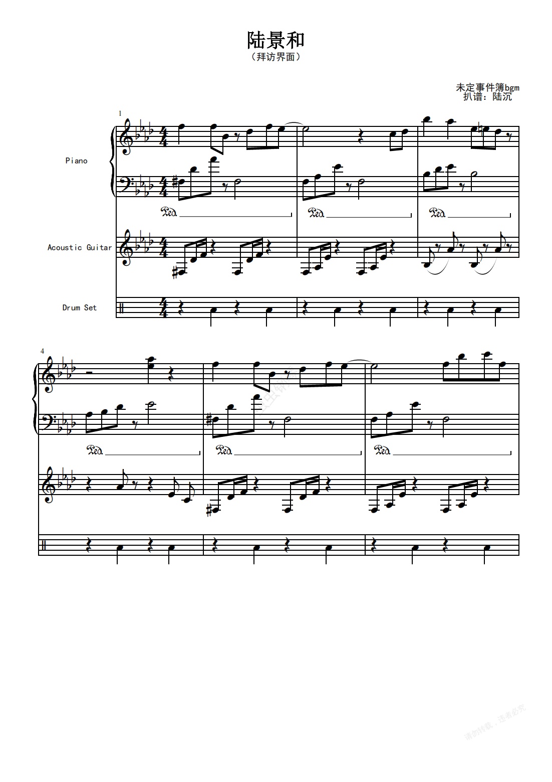钢琴谱:未定事件簿-陆景和拜访界面