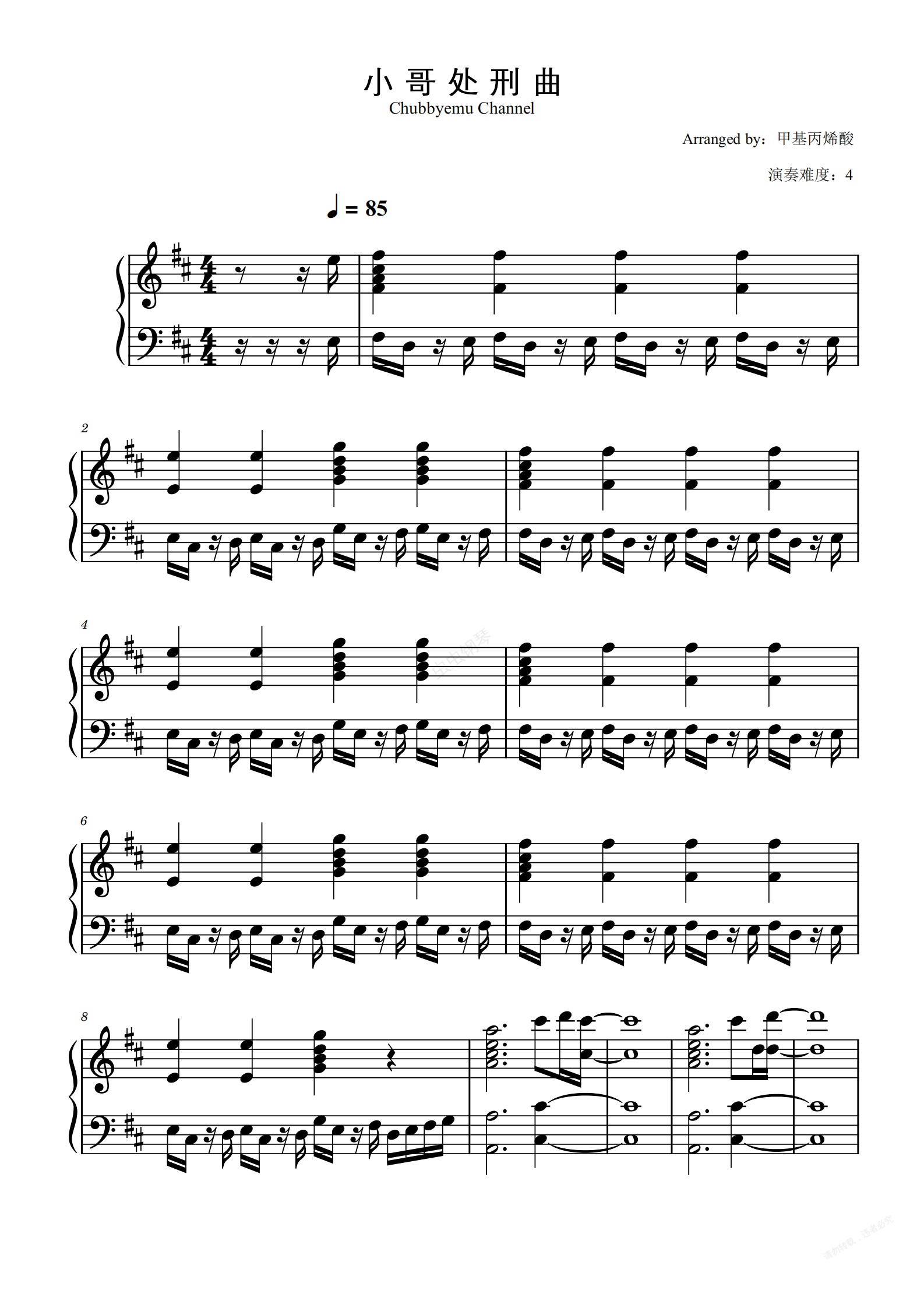 钢琴谱:小哥处刑曲-钢琴独奏谱