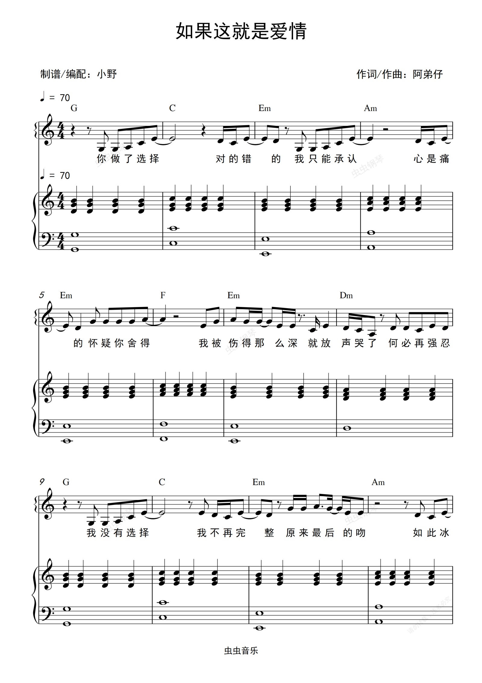 钢琴谱:如果这就是爱情(和弦弹唱版)