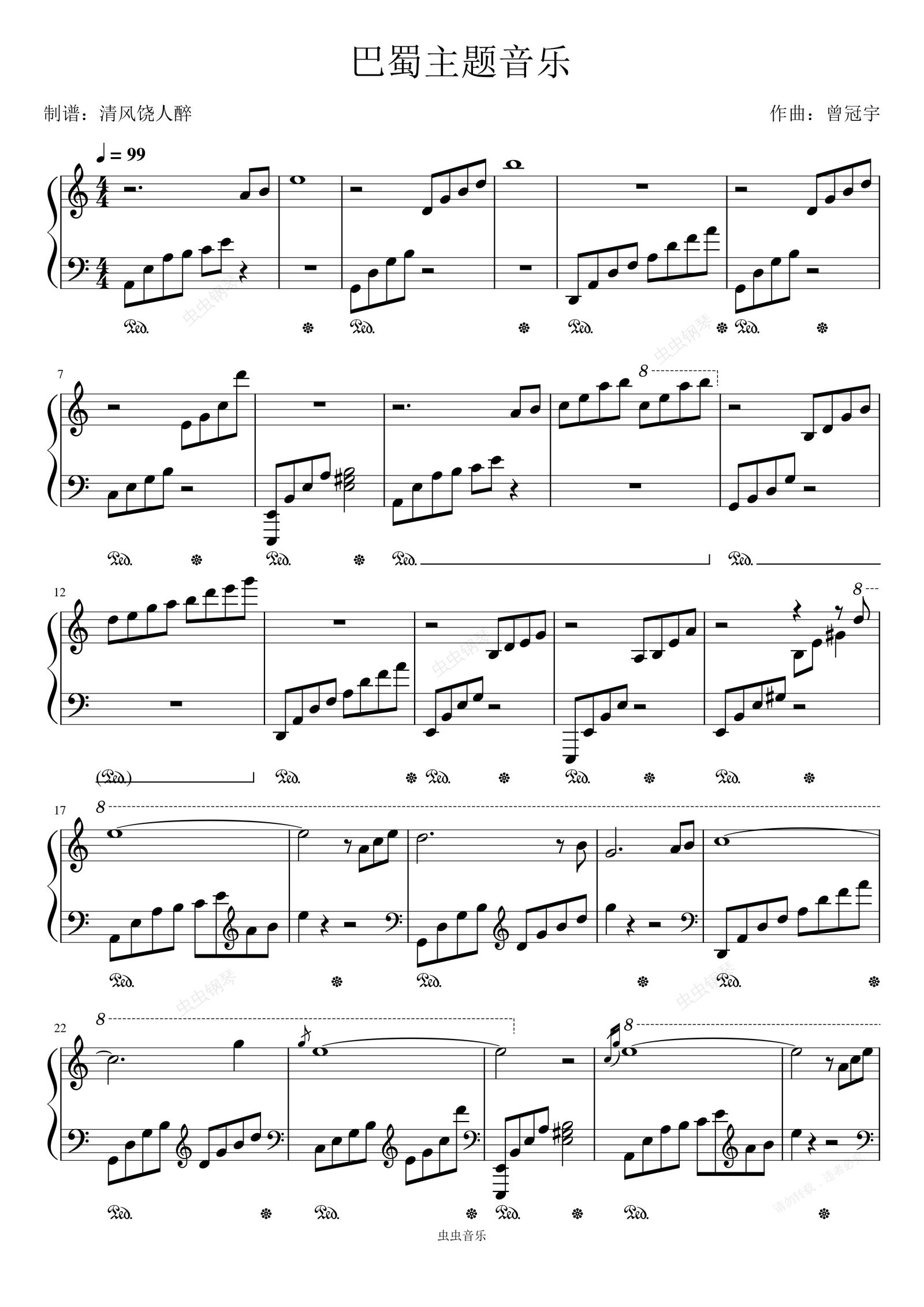 钢琴谱:网游天下三巴蜀背景BGM
