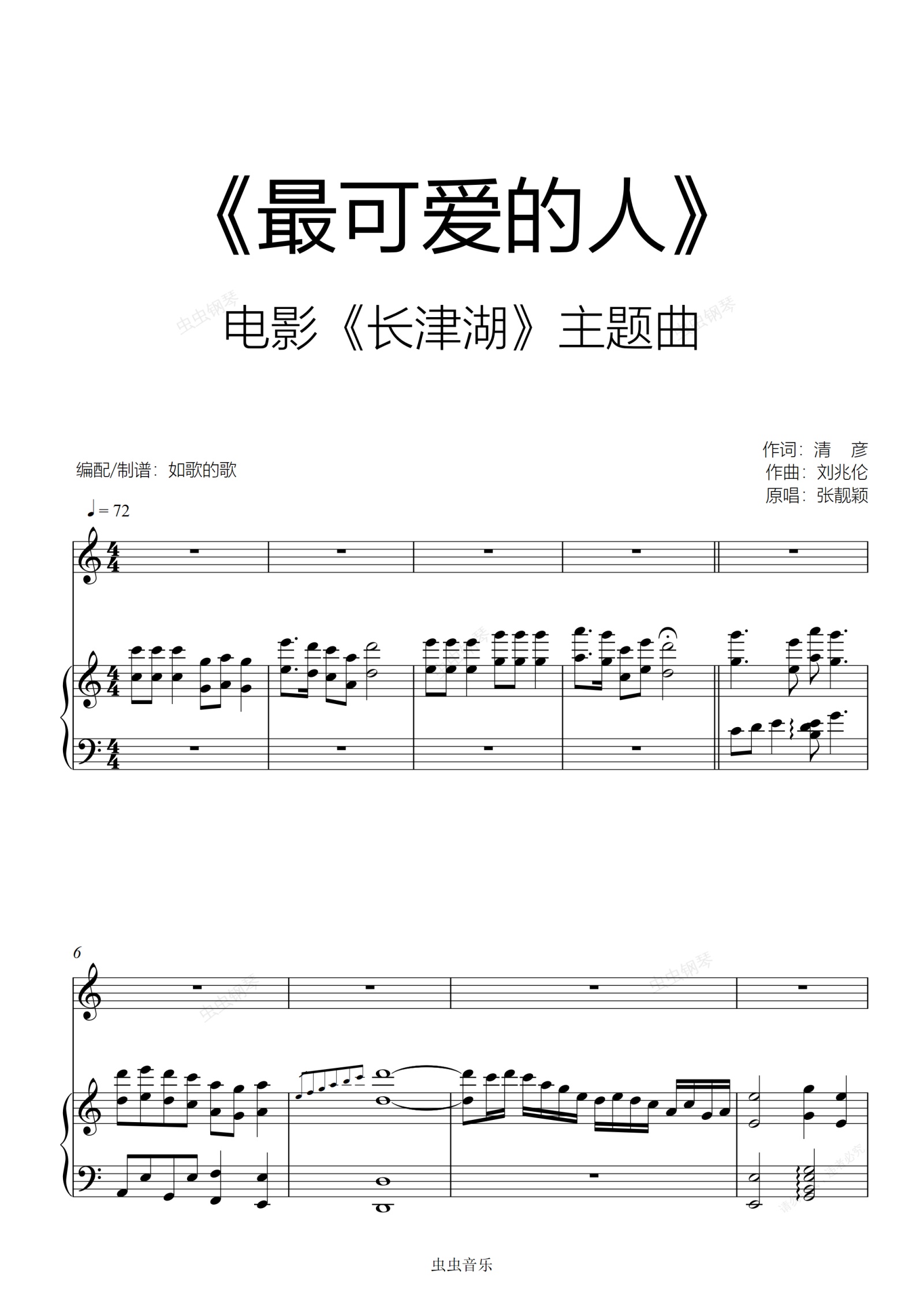 钢琴谱:电影《长津湖》主题曲《最可爱的人》独唱+钢伴