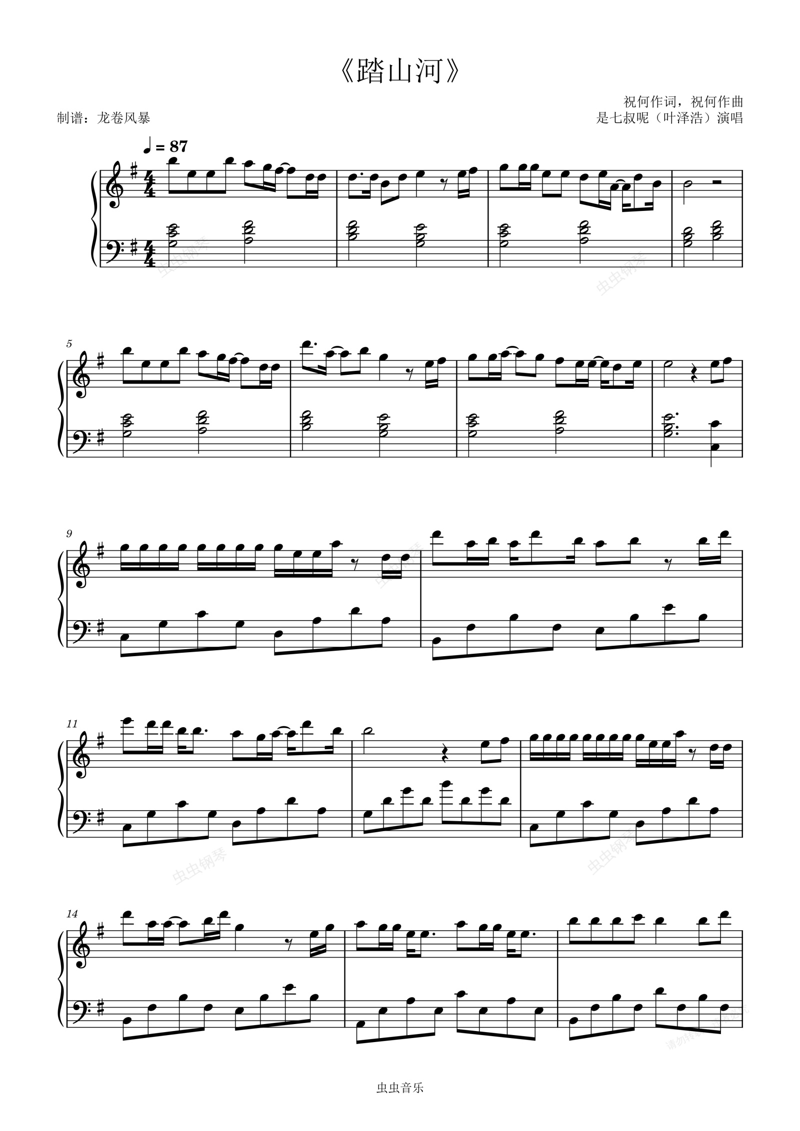 钢琴谱:《踏山河》是七叔呢(原调简易版)
