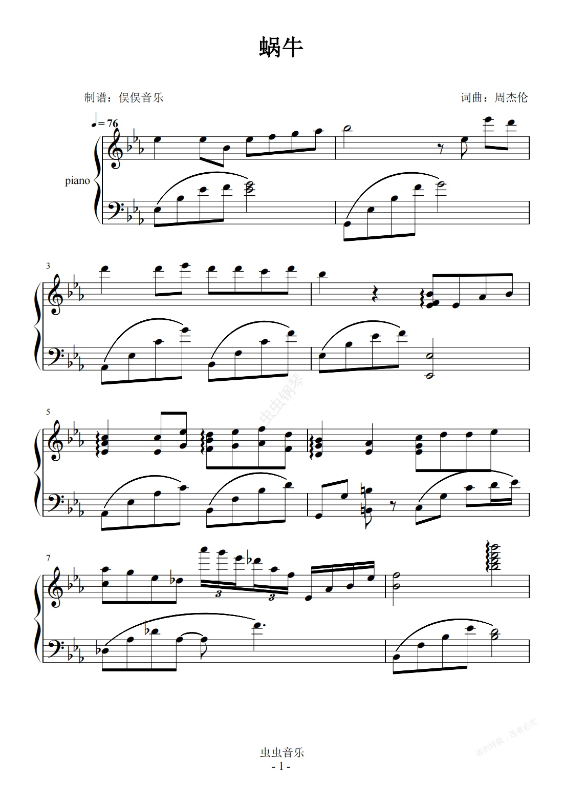 钢琴谱:周杰伦 - 蜗牛(合唱伴奏谱)