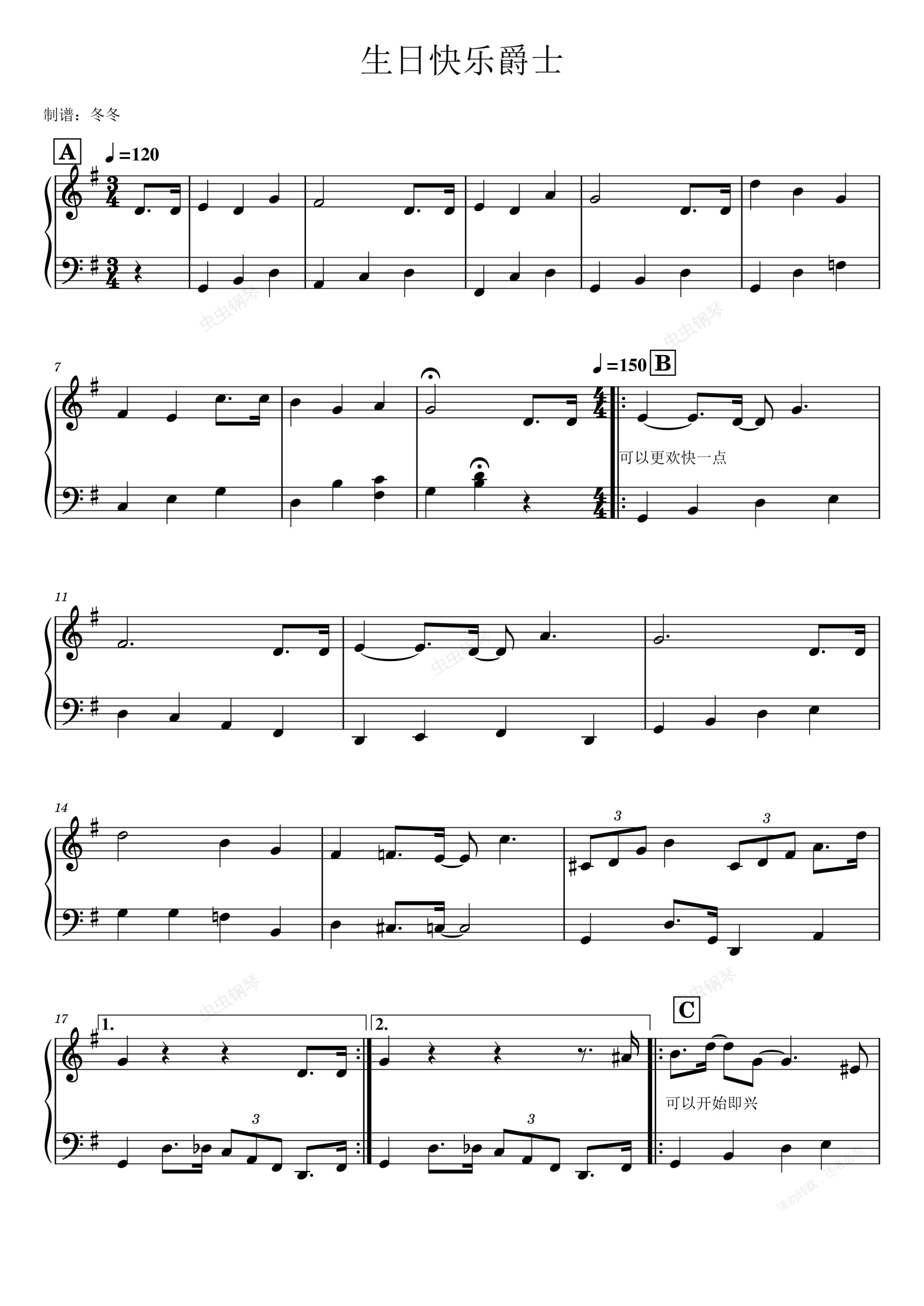 第一段是生日快乐原曲,第二段变成爵士版,第三段开始即兴