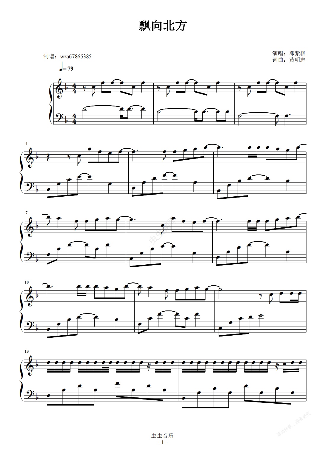 钢琴谱:飘向北方