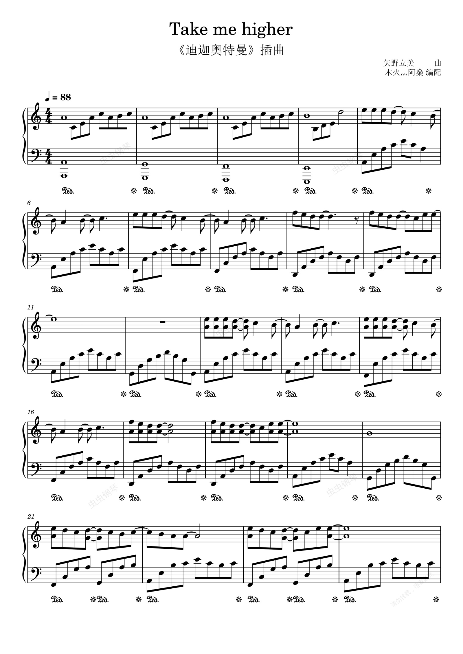 钢琴谱:《迪迦奥特曼》插曲-Take me higher-柔情版C调(超人迪加)