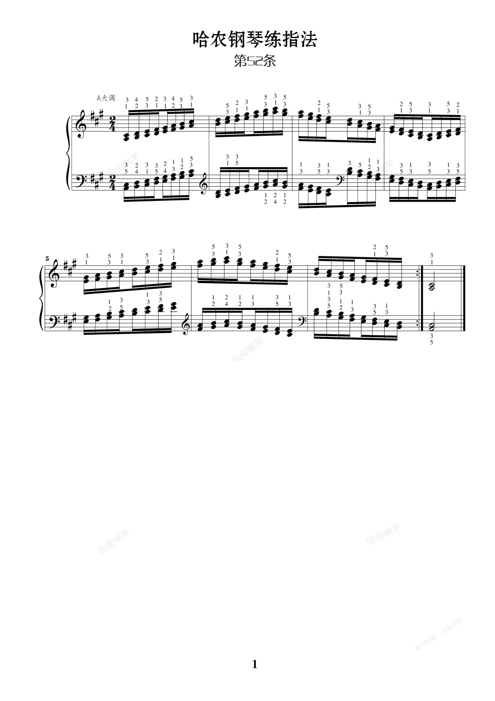 钢琴谱:哈农 No.52-4 A大调