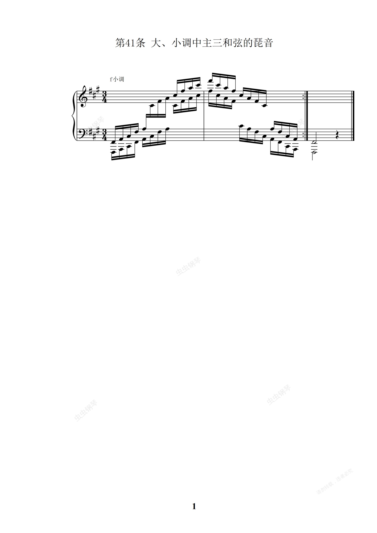 钢琴谱:哈农 No.41-20 升f小调主三和弦琶音