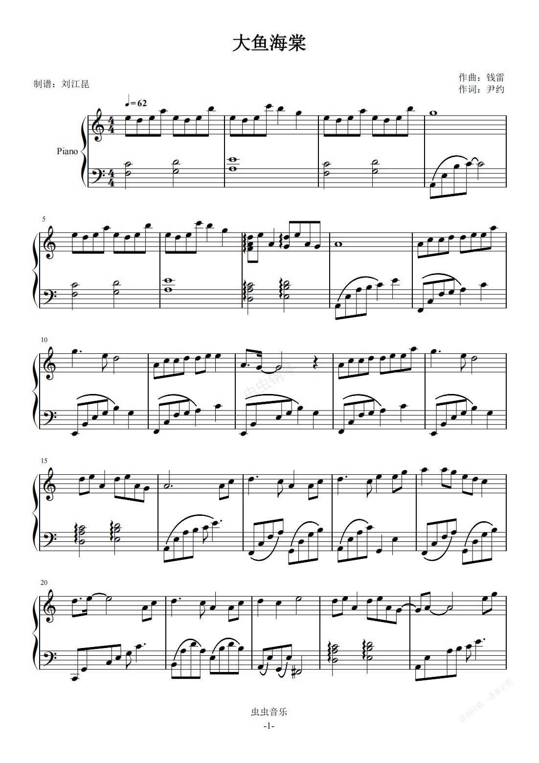 钢琴谱:大鱼海棠(C调精心制作版本)